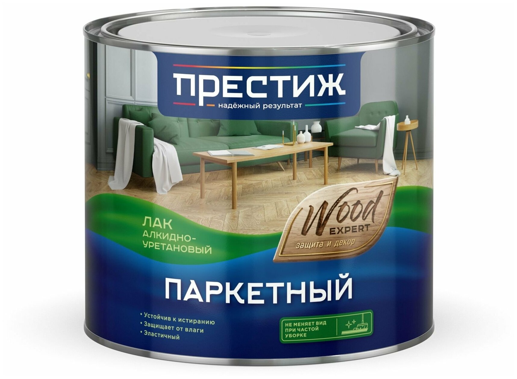 Лак паркетный Престиж, алкидно-уретановый, прозрачный, глянцевый, 1,9 л, 1шт, жестяная банка