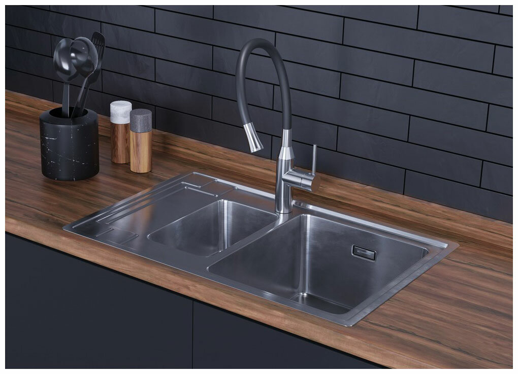 | Отзыв: | У смесителя очень широкое основание, проверьте, влезет ли вообще он в край мойки. Скорее всего надо было устанавливать в столешницу, но мы как-то вместили в обычную мойку. |