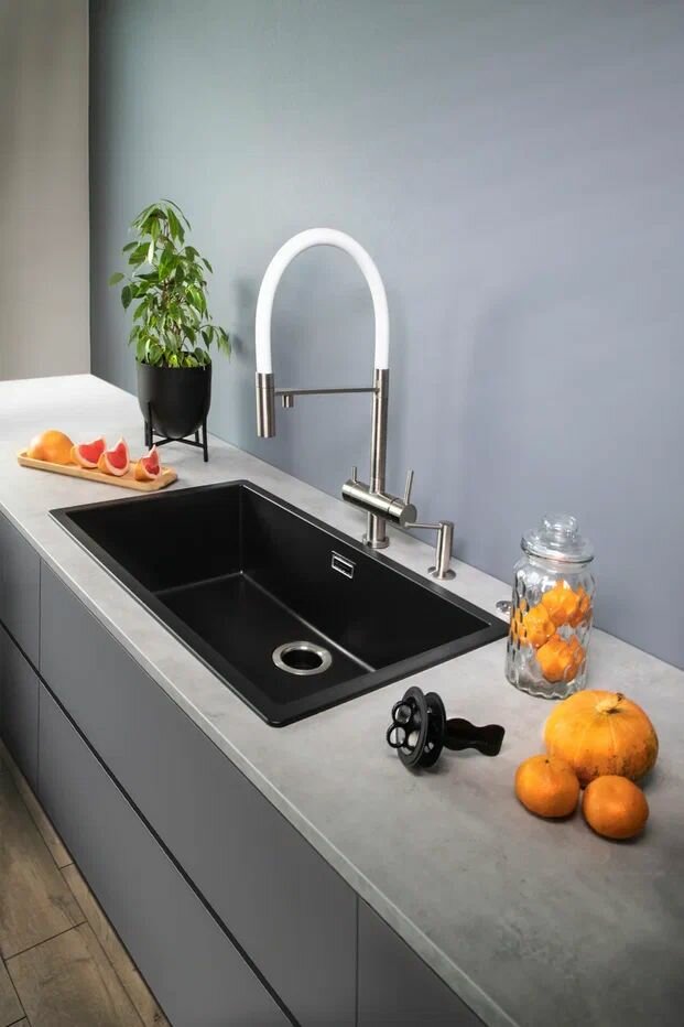 Простота установки, все можно собрать самому. Очень удобно, благодаря мягкому шлангу смывать остатки еды в мойке! Качество материалов на высшем уровне! |