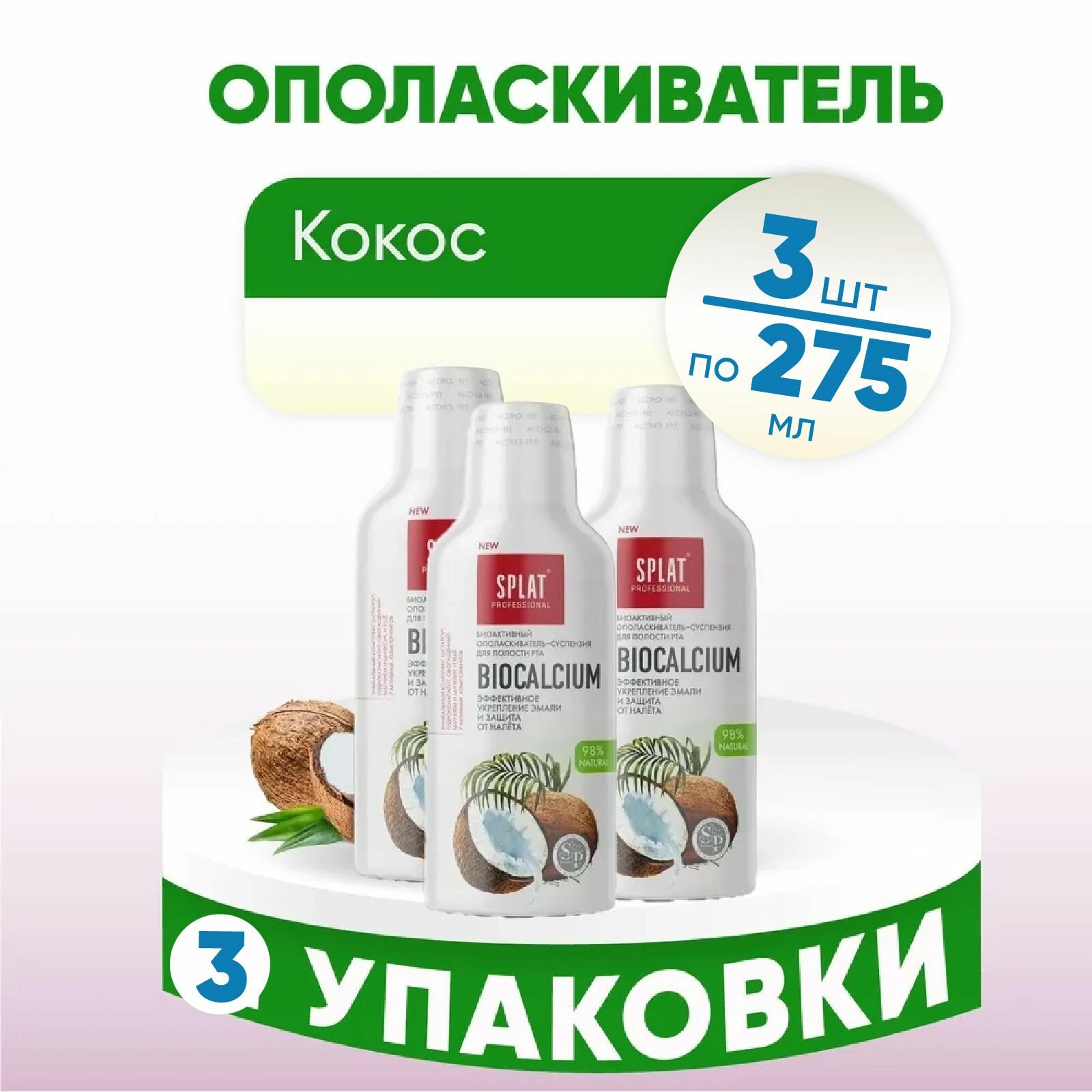 Ополаскиватель для полости рта Splat Biocalcium, 275 мл, 3 шт