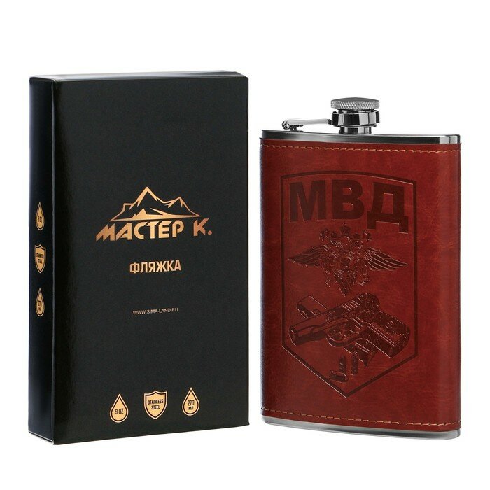 Купить Фляжка для алкоголя "МВД", нержавеющая сталь, подарочная, армейская, 270 мл, 9 oz