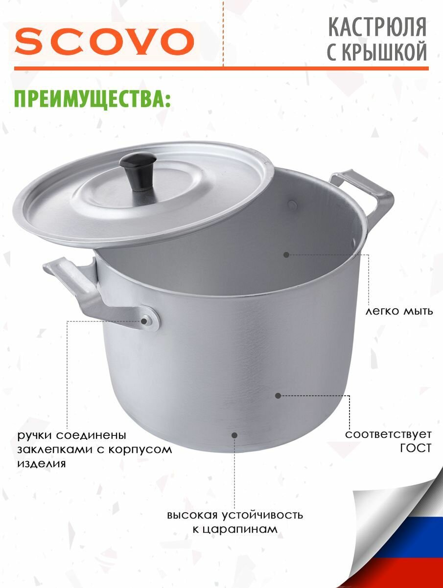 Кастрюля алюминий, 2.5 л, с крышкой, Scovo, МТ-004