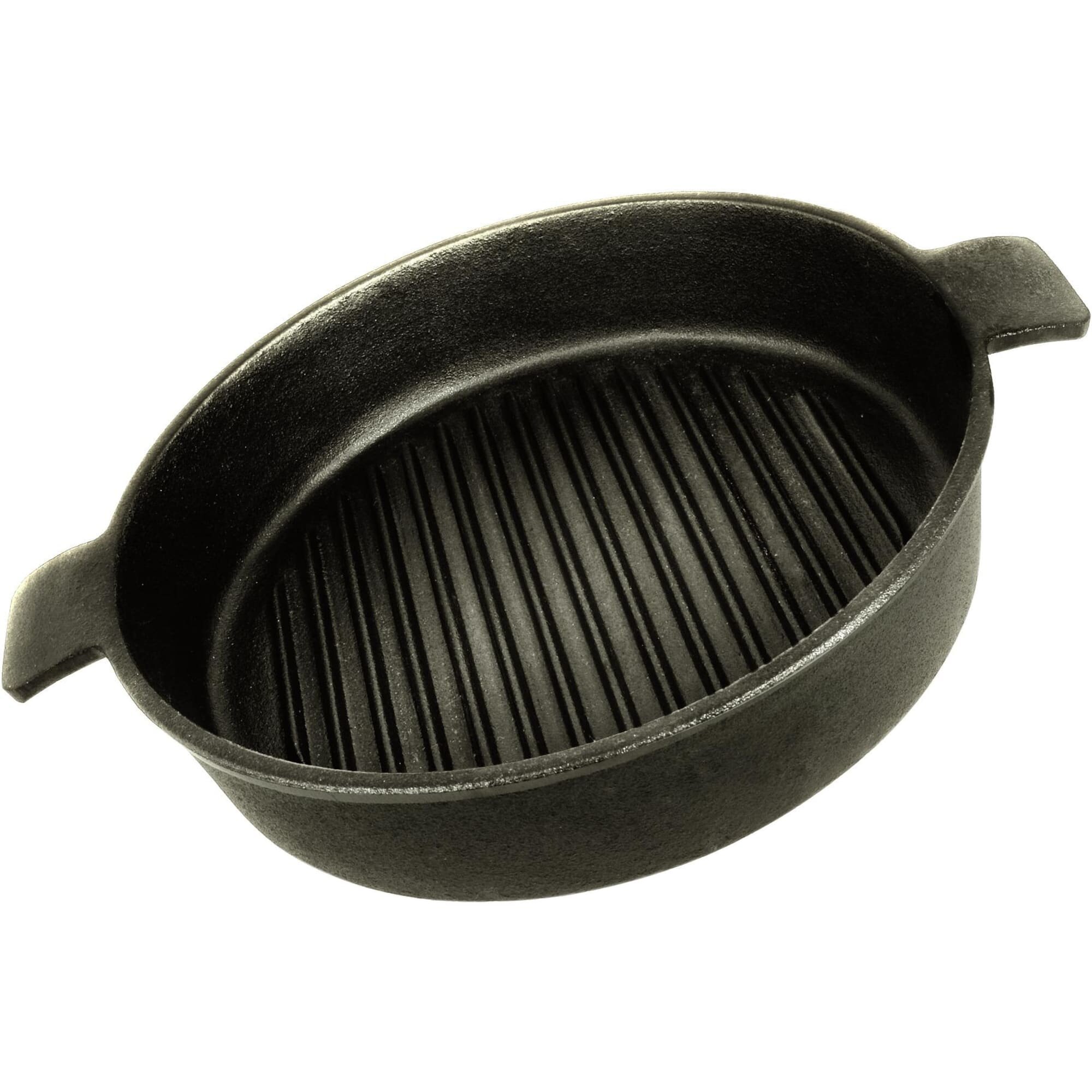 Купить Сковорода-гриль круглая чугунная 24 см, 2 боковые ручки
