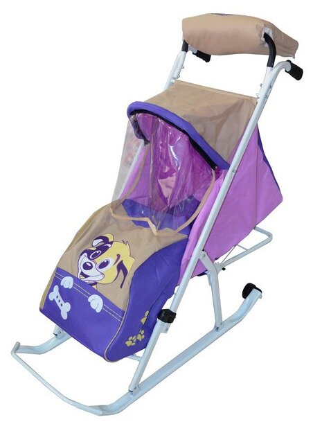 Санки-коляска детские Комфорт Люкс "Любопытный щенок" (цвет: сиреневый) интересное:
