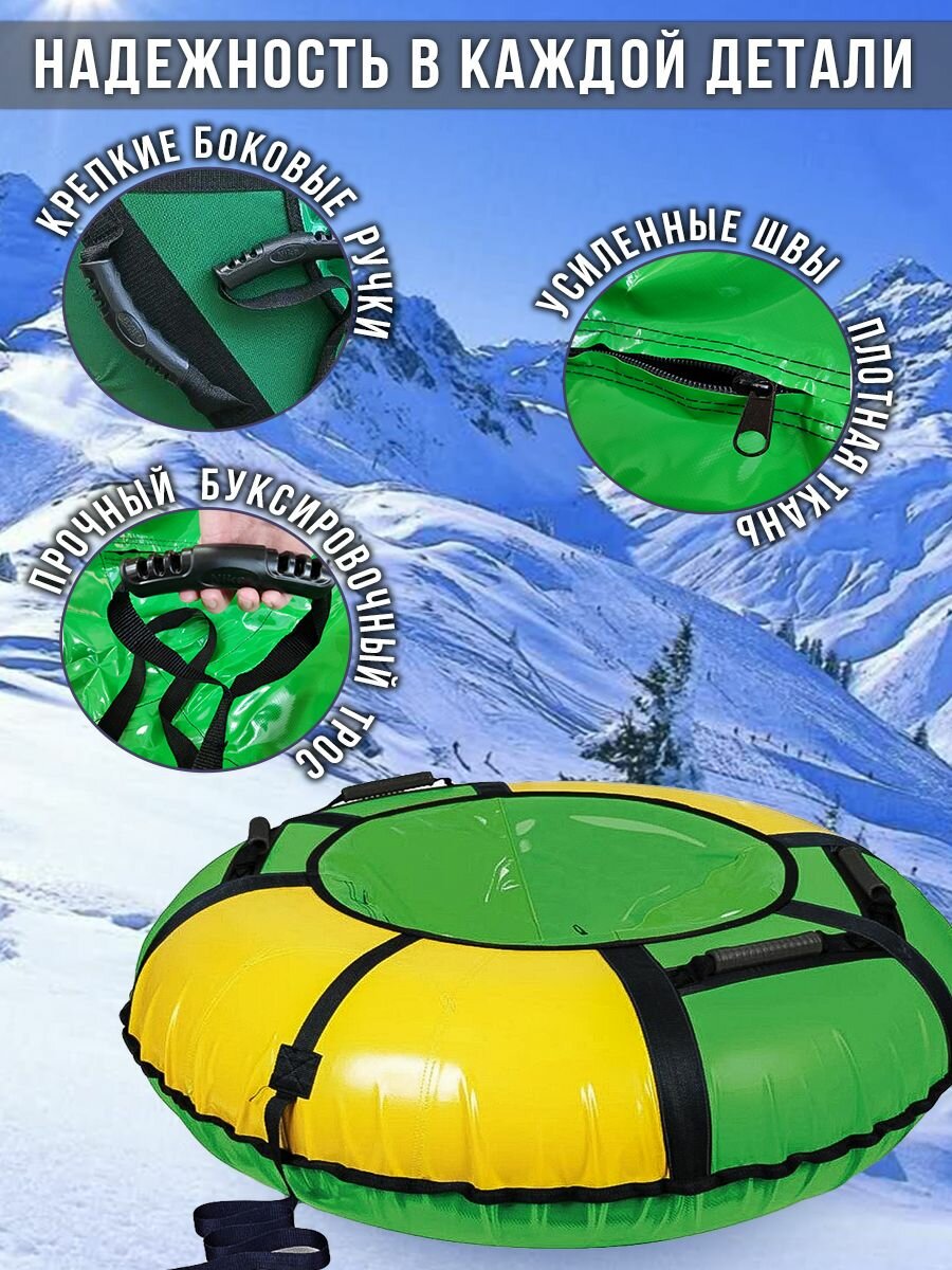Ватрушка тюбинг диаметр 95 см, ПВХ, мягкие ручки, буксировочный трос, зеленый-желтый Классик Nika