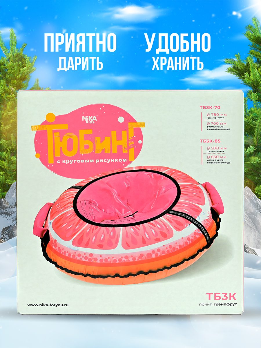 Ниже Вы можете прочитать отзывы на Тюбинг Nika с круговым дизайном ТБ3К-85 грейпфрут, ознакомится с подробными характеристиками, посмотреть интересные обзоры и фотографии на Тюбинг Nika с круговым дизайном ТБ3К-85 грейпфрут.