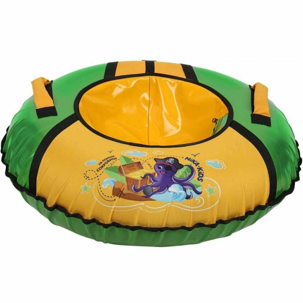 Санки-ватрушка Nika, Сокровища, 70 см, 70 кг, с буксировочным тросом, с ручками, желто-зеленые, ТБ1КР-70/С2
