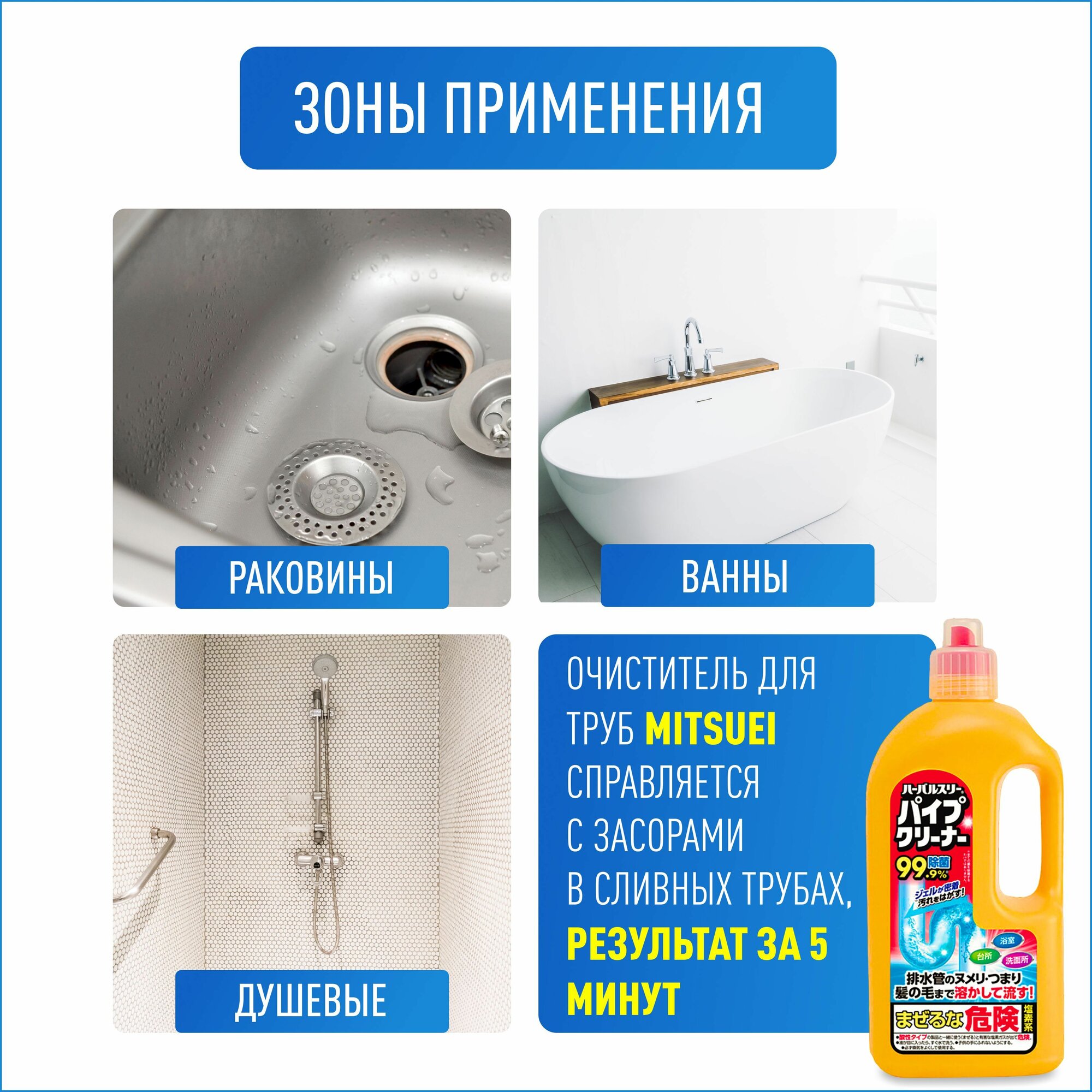Очиститель для труб от засоров Mitsuei 1 л., концентрированный, Япония антибактериальное средство для труб
