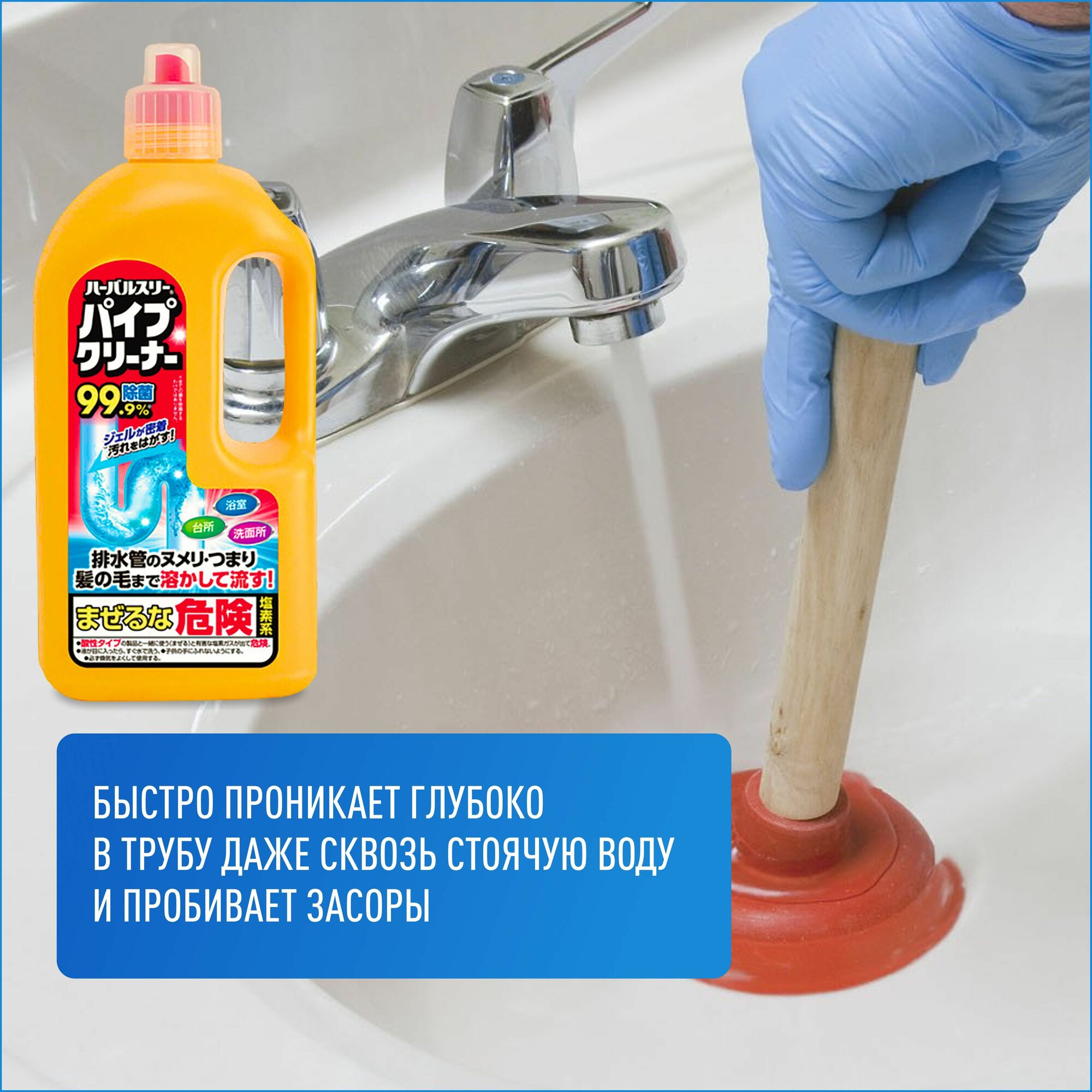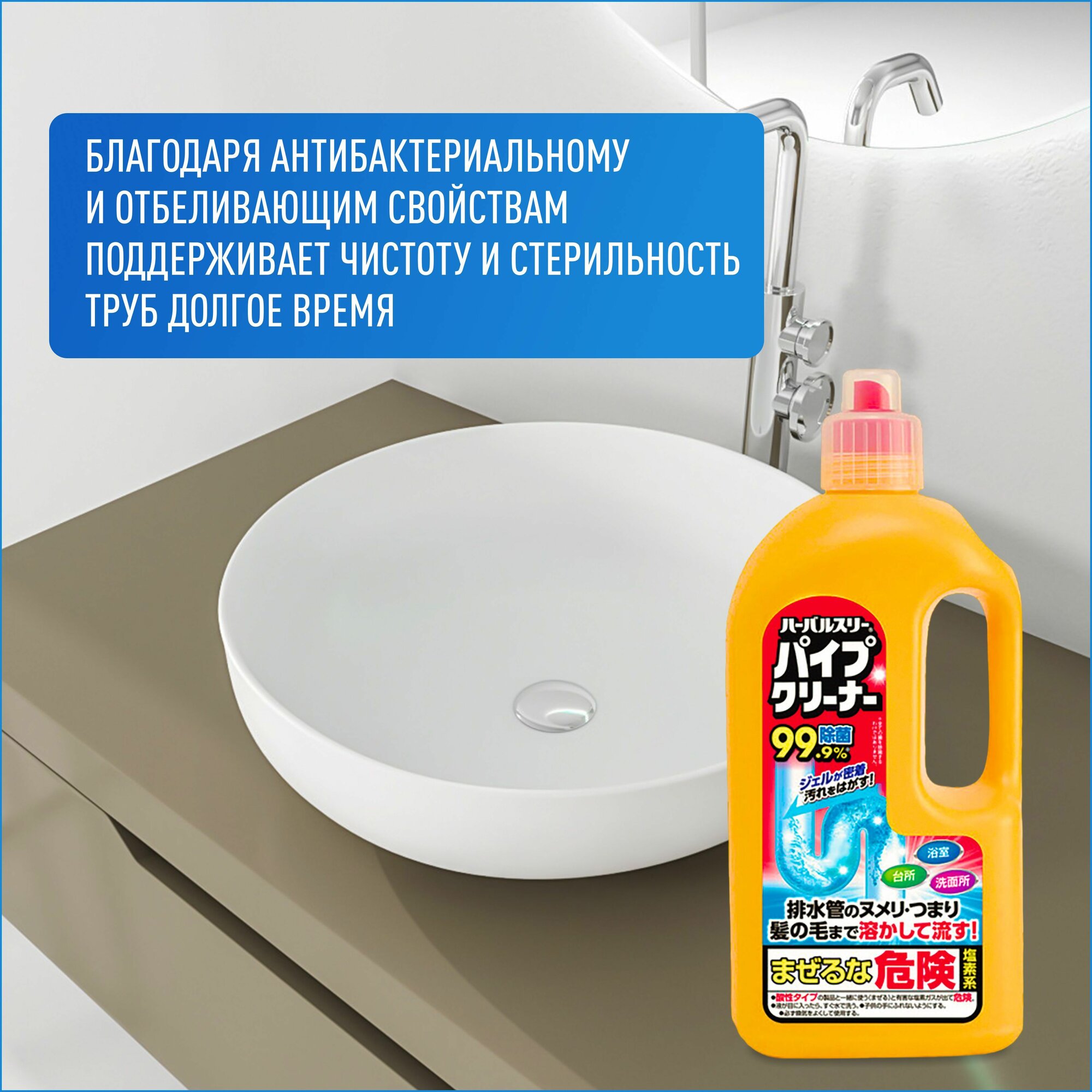 Очиститель для труб от засоров Mitsuei 0.8 л, Япония / Гель для удаления засоров, очиститель канализационых и сливных труб в ванной и на кухне / Антибактериальное средство