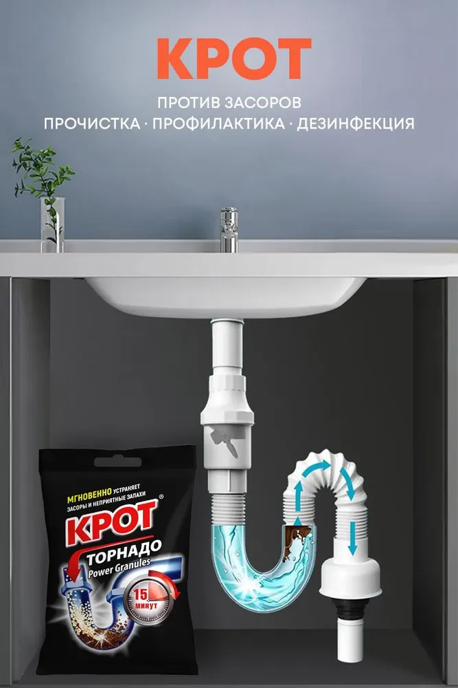 Крот Торнадо гель, средство для прочистки труб, средство от засоров, в трубах, прочистка труб, крот для труб, очиститель труб
