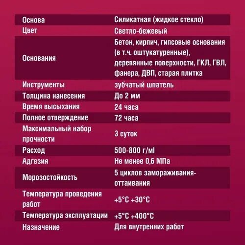 | Минимальная температура применения | 5 °C |