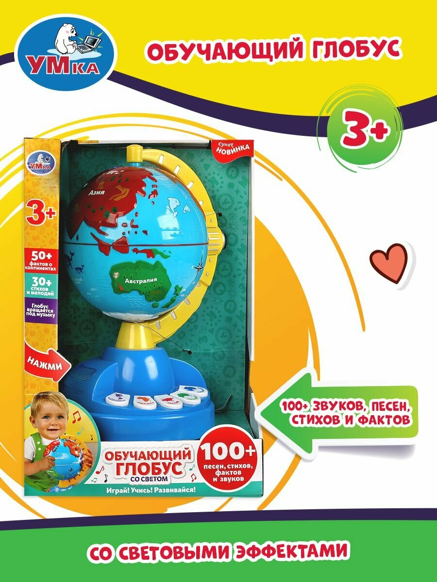 Обучающая игрушка Умка Глобус 100 песен, стихов, звуков, мелодий