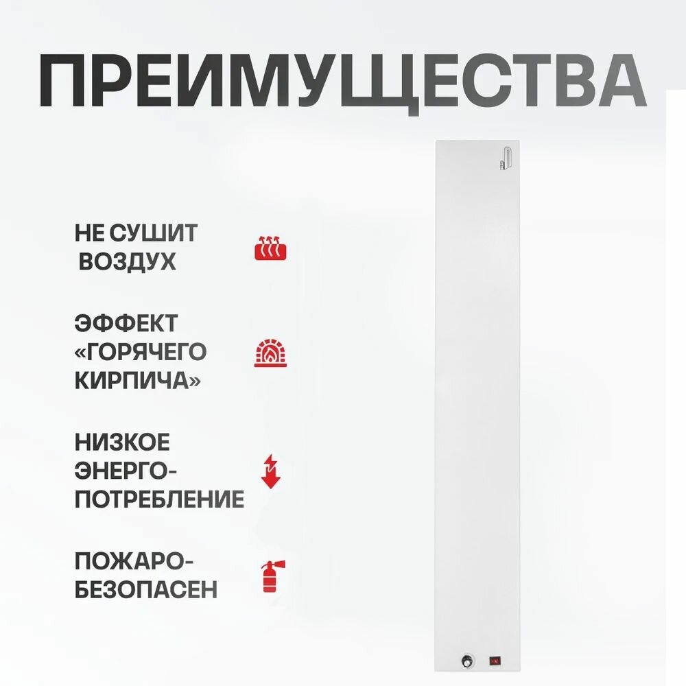 Инфракрасно-конвективный плинтусный обогреватель "СТН" P-1T (IP24 Б), 250вт белый c терморегулятором