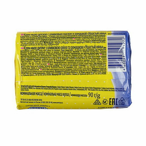 Невская косметика Крем-мыло Ушастый нянь с оливковым маслом и экстрактом ромашки 90 гр