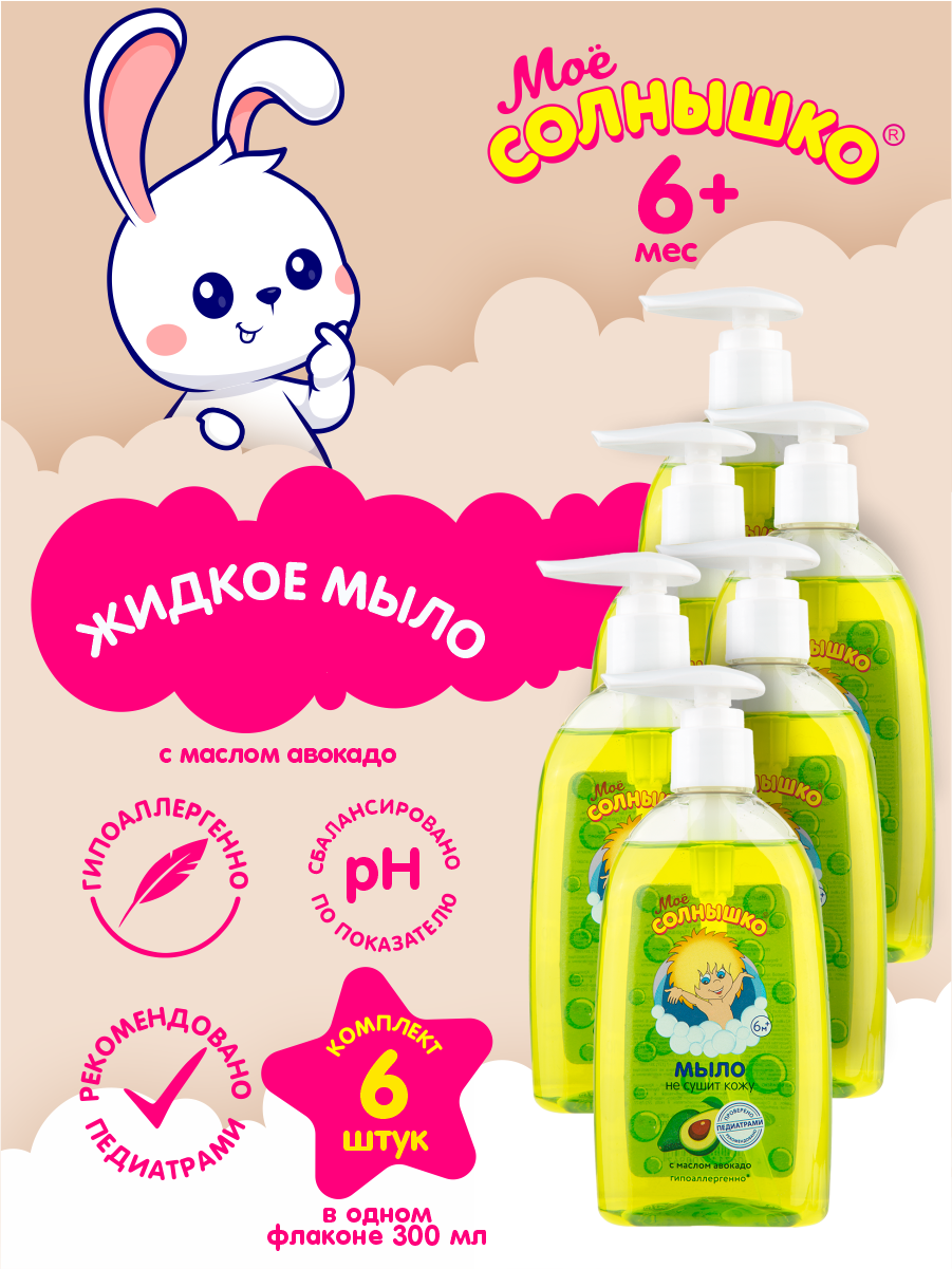 Купить Моё солнышко Мыло жидкое с маслом авокадо 300 мл, 6 шт