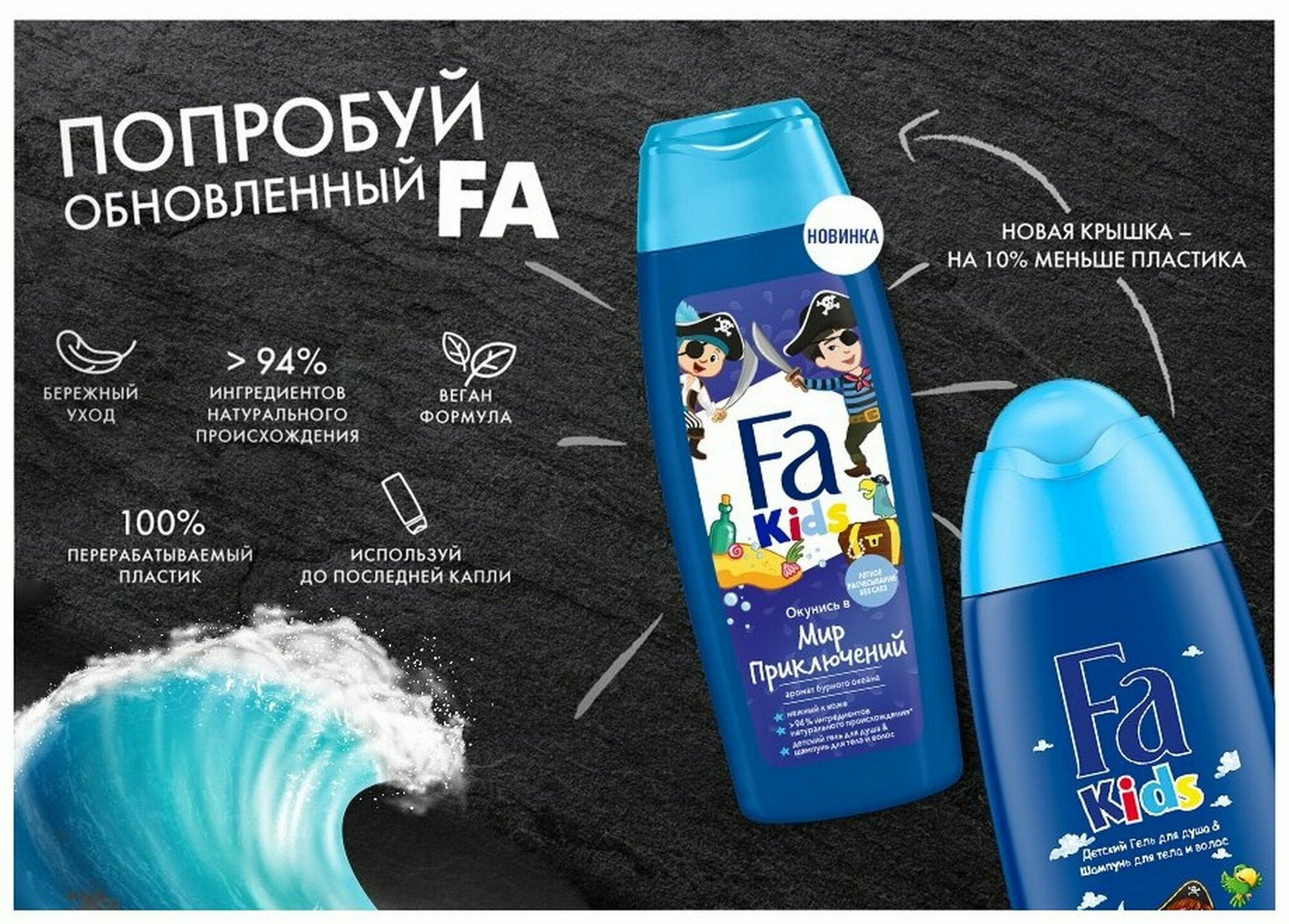 Детский шампунь-гель 2 в 1 ФА Kids Храбрый пират, 250 мл