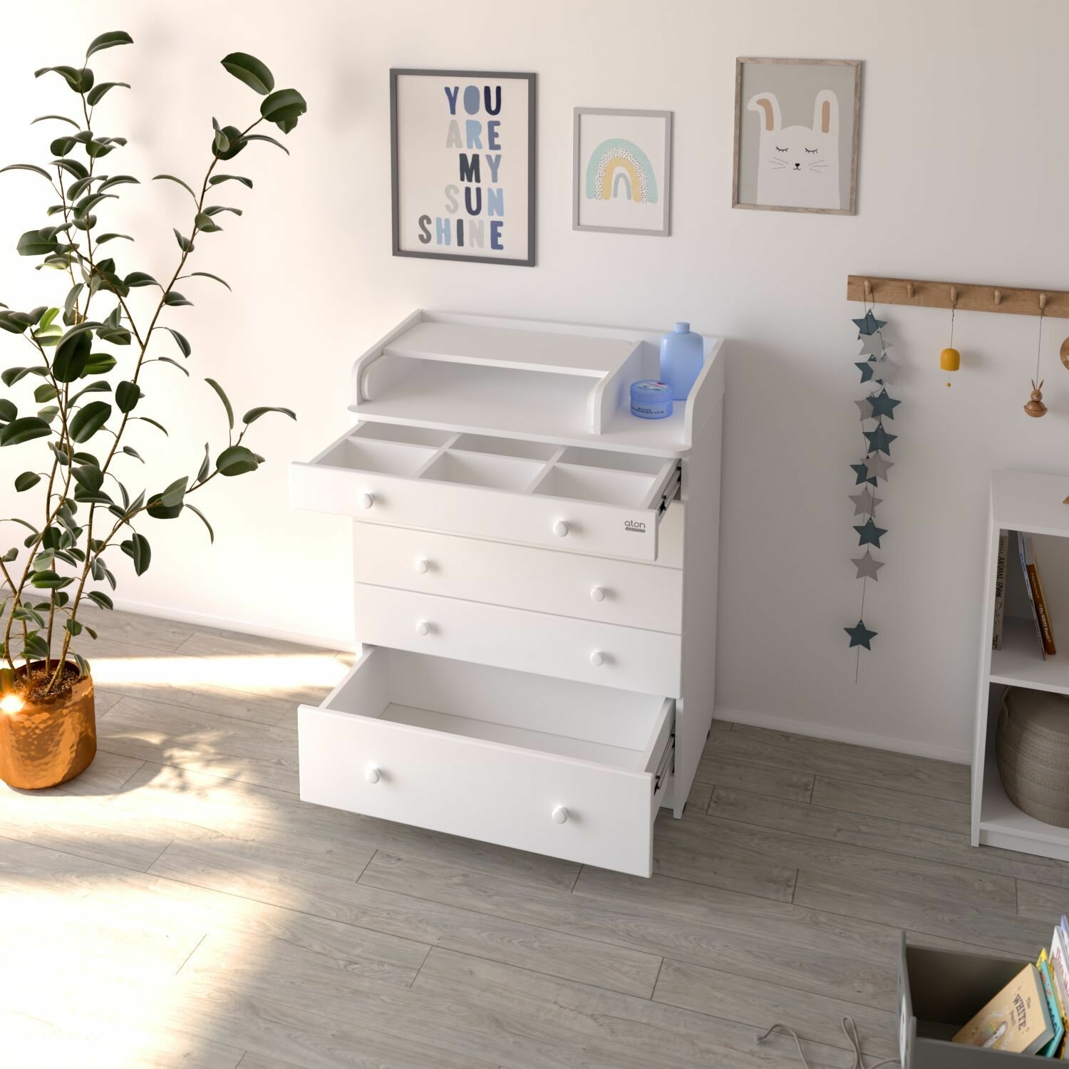 Детский пеленальный комод Атон Сириус 600/4 с ящиками, шимо светлый, белый