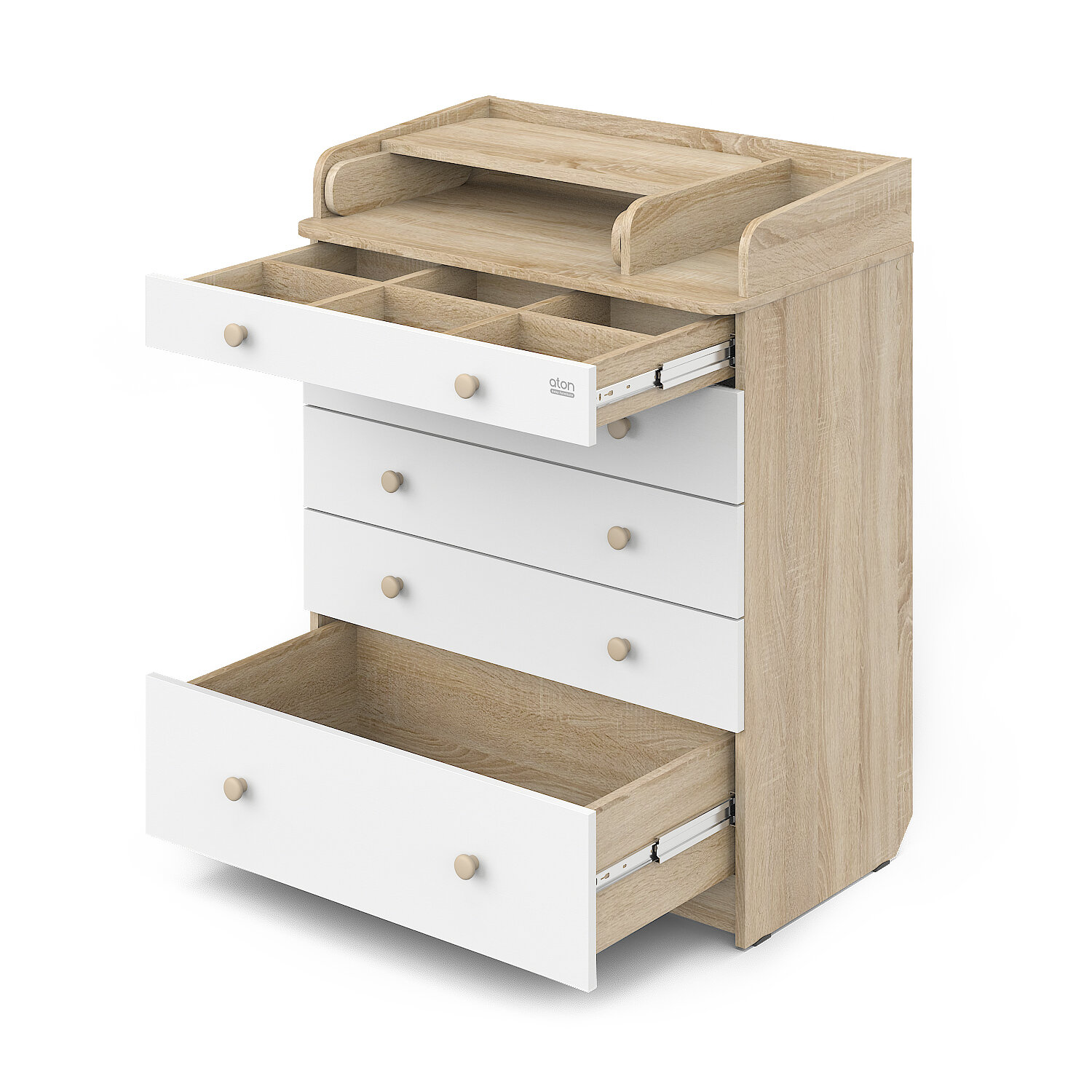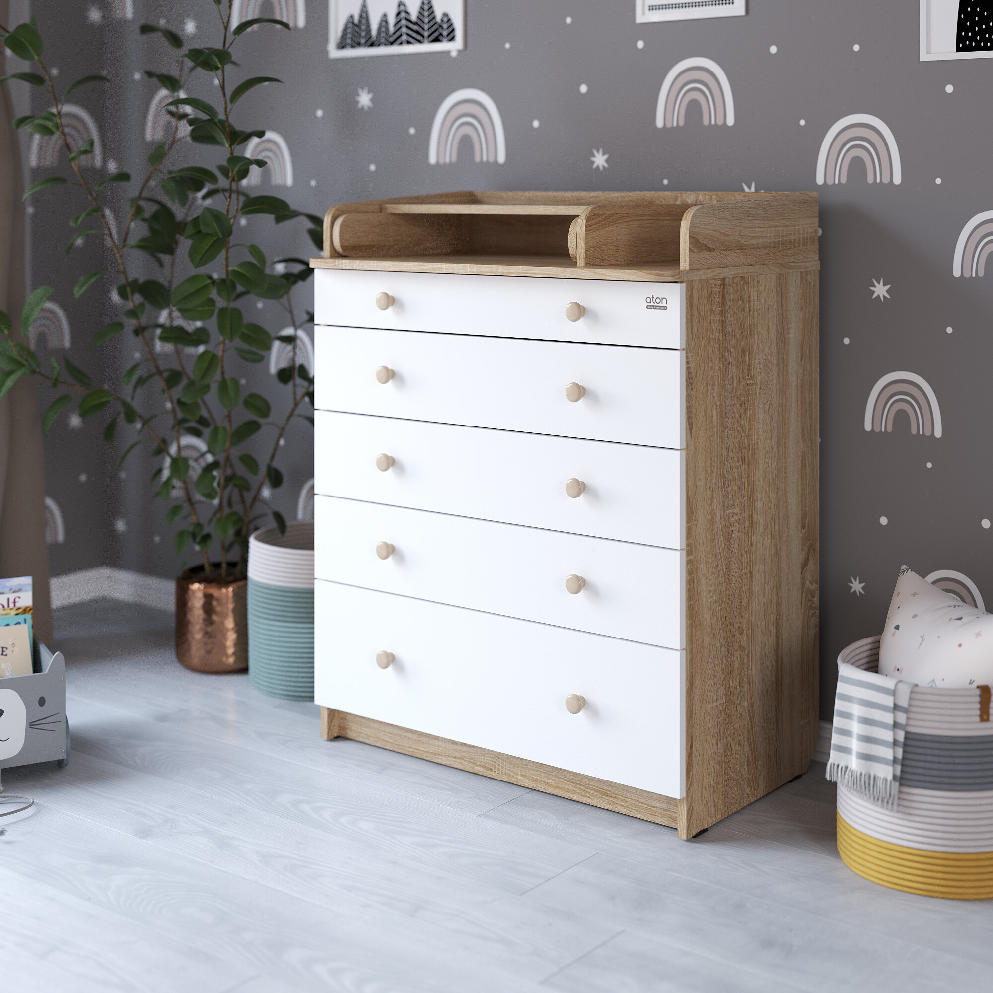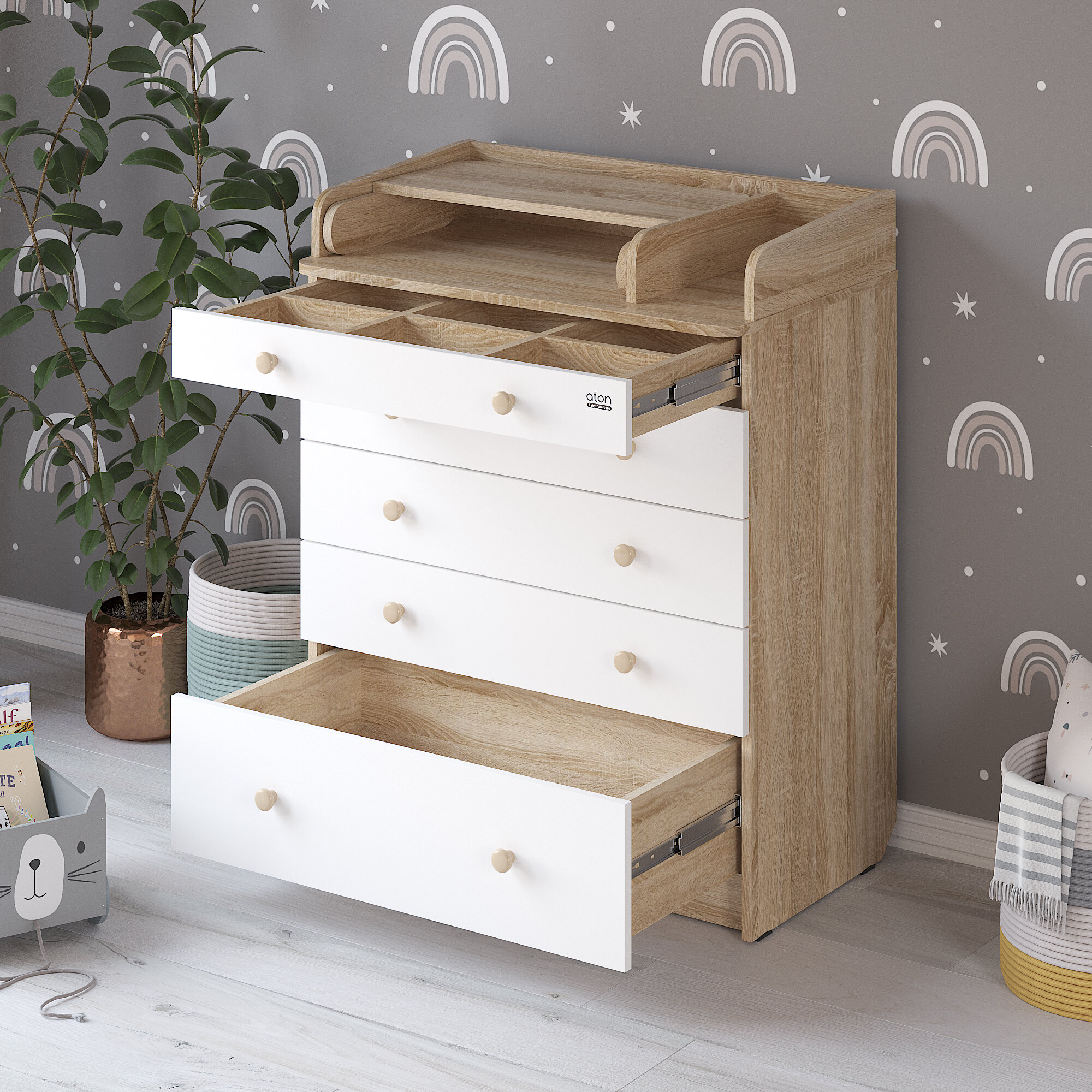Комод пеленальный aton LEO, 5 ящиков с органайзером, дуб сонома