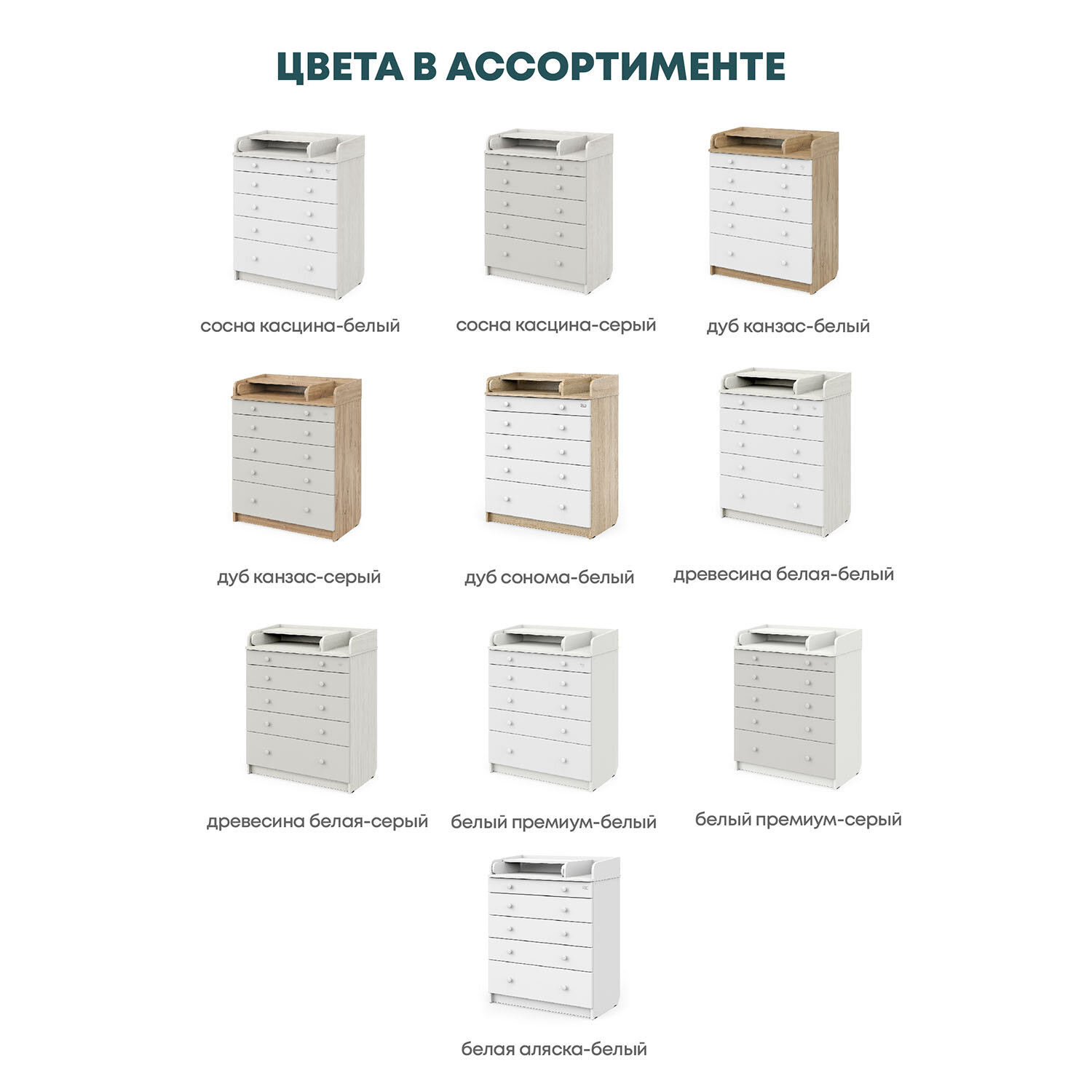 Комод детский пеленальный Maks ЛДСП 800/5, с органайзером, 5 ящиков, цвет аляска-белый