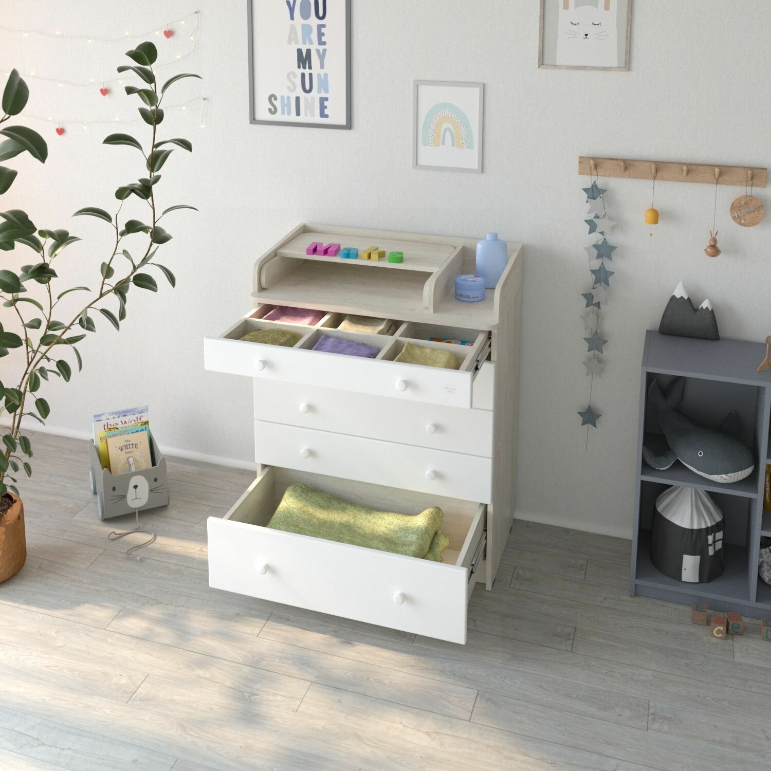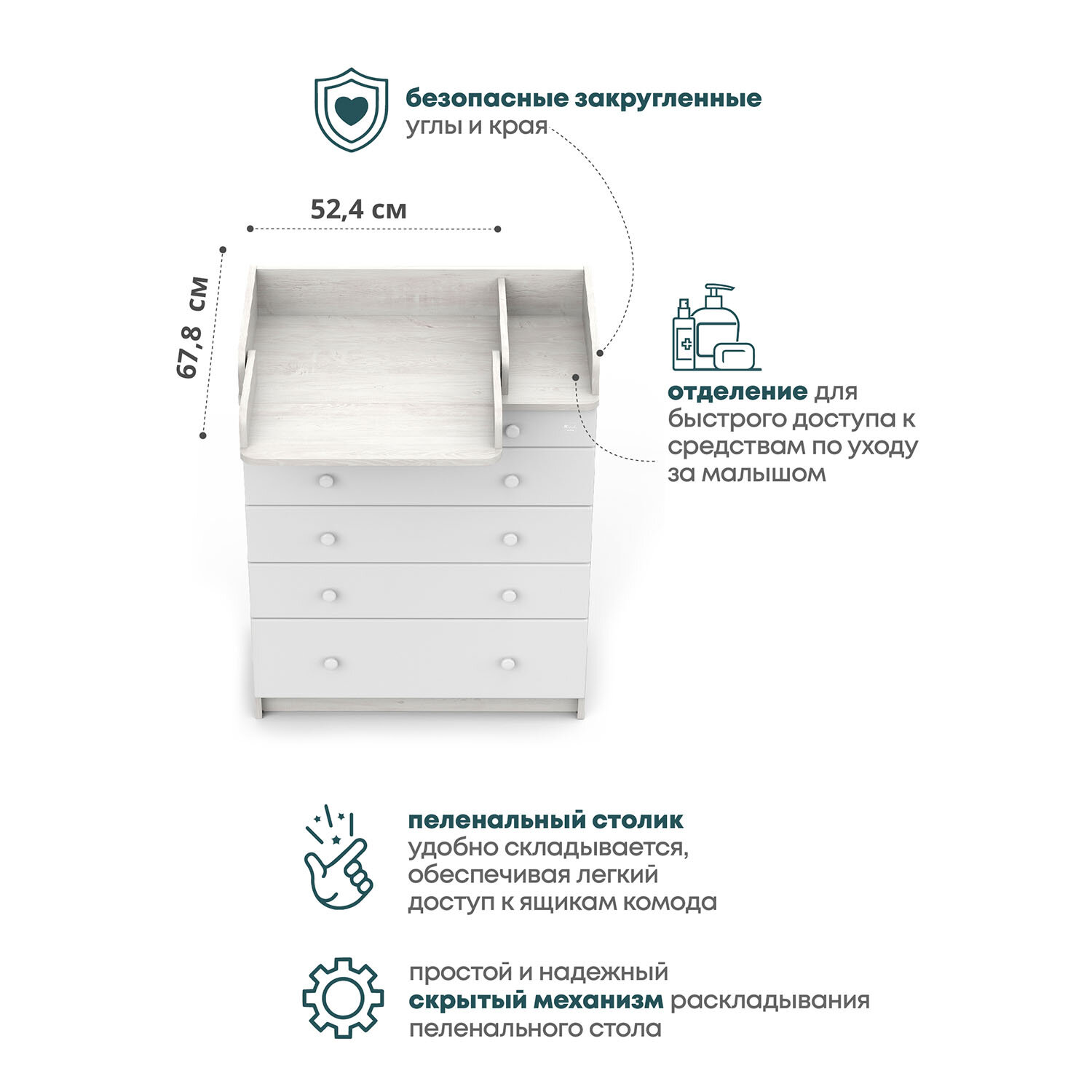 Комод детский с пеленальным столиком Сириус 604 ЛДСП, белый, 4 ящика