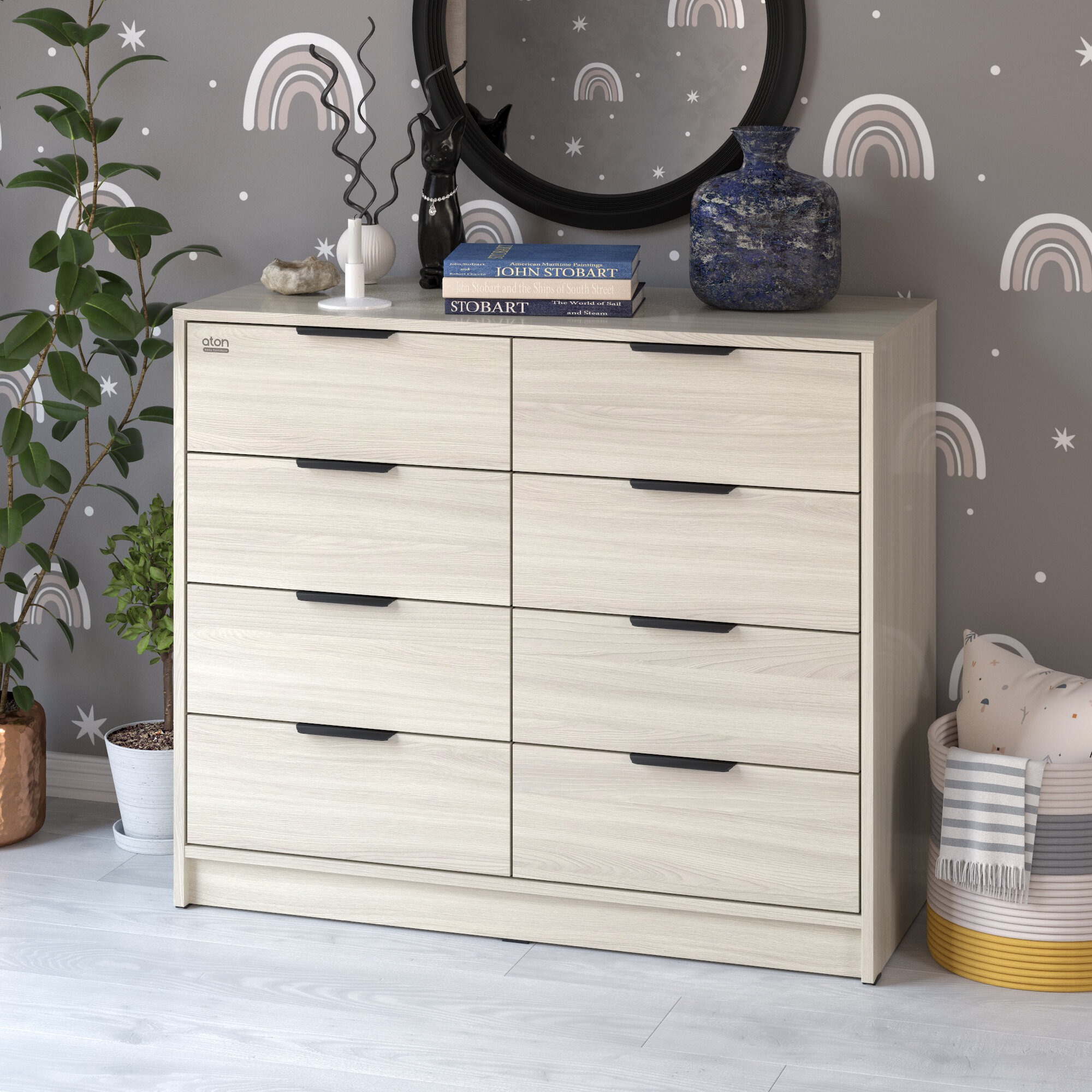 Атон комод "Zeus" шариковые направляющие 8 ящ.Дуб тонсберг/фарфор