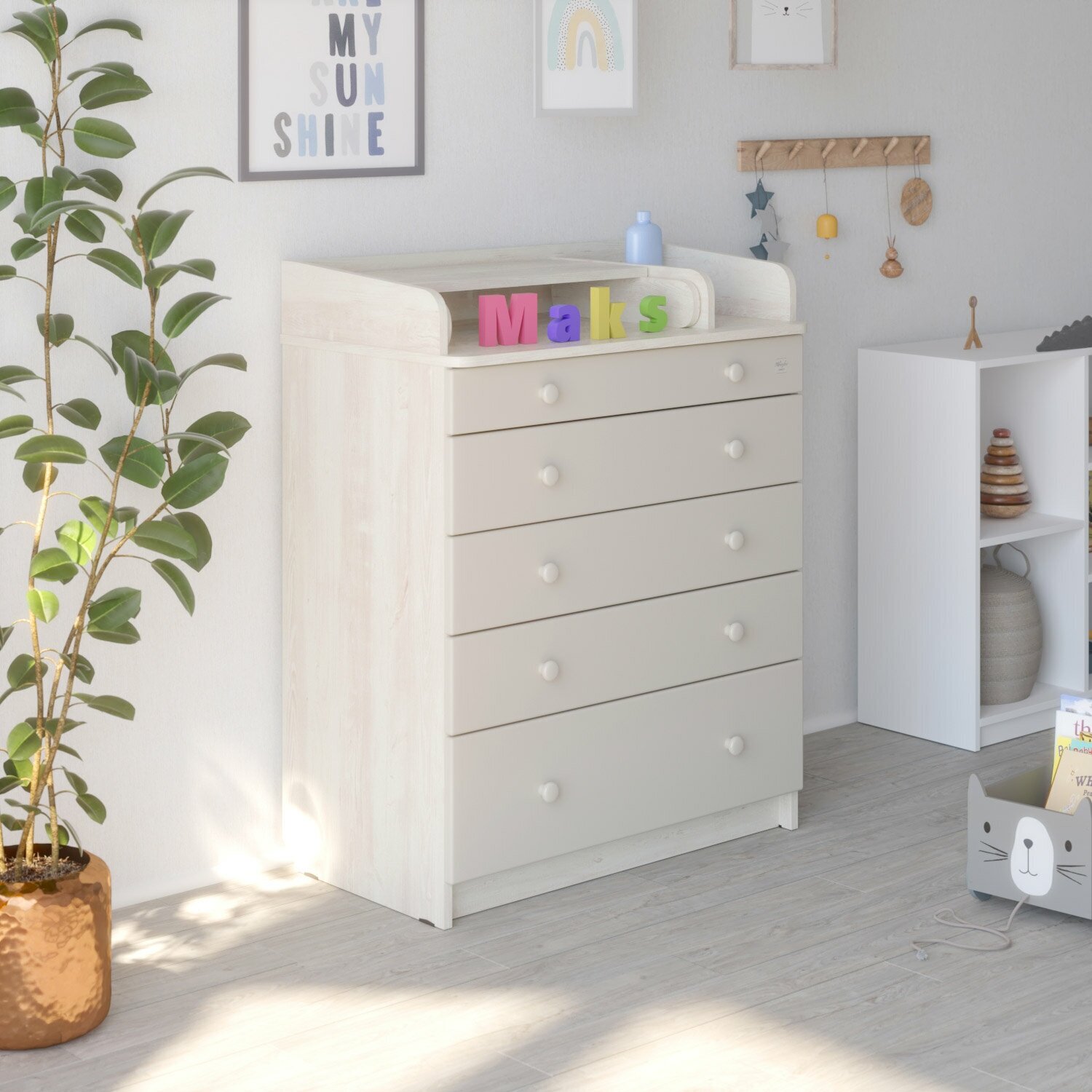 Пеленальный комод Maks, 5 ящиков, Сосна касцина/Белый софт