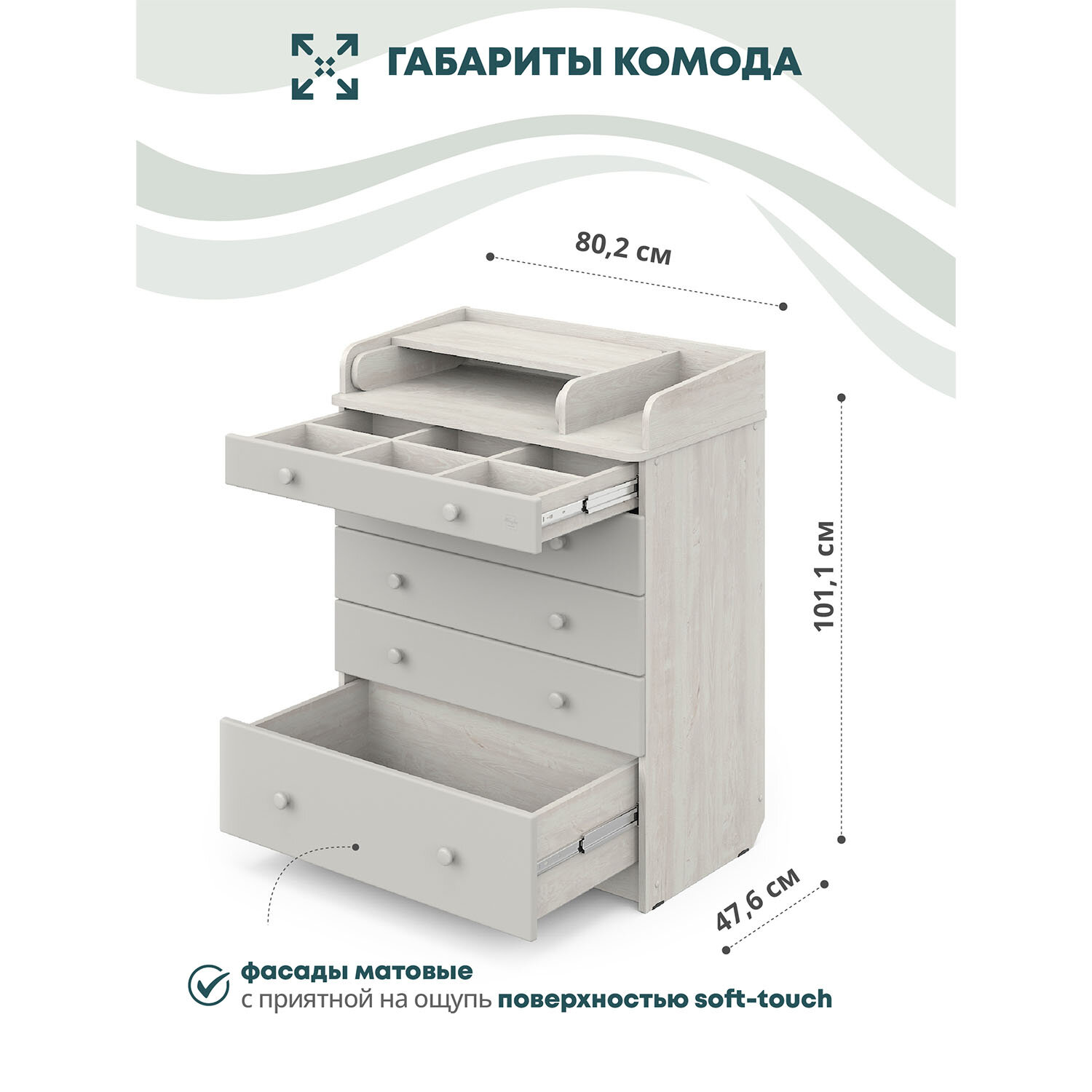 Пеленальный комод Атон Maks с органайзером, 80 х 100 см, 5 ящиков, белый премиум/серый шелк