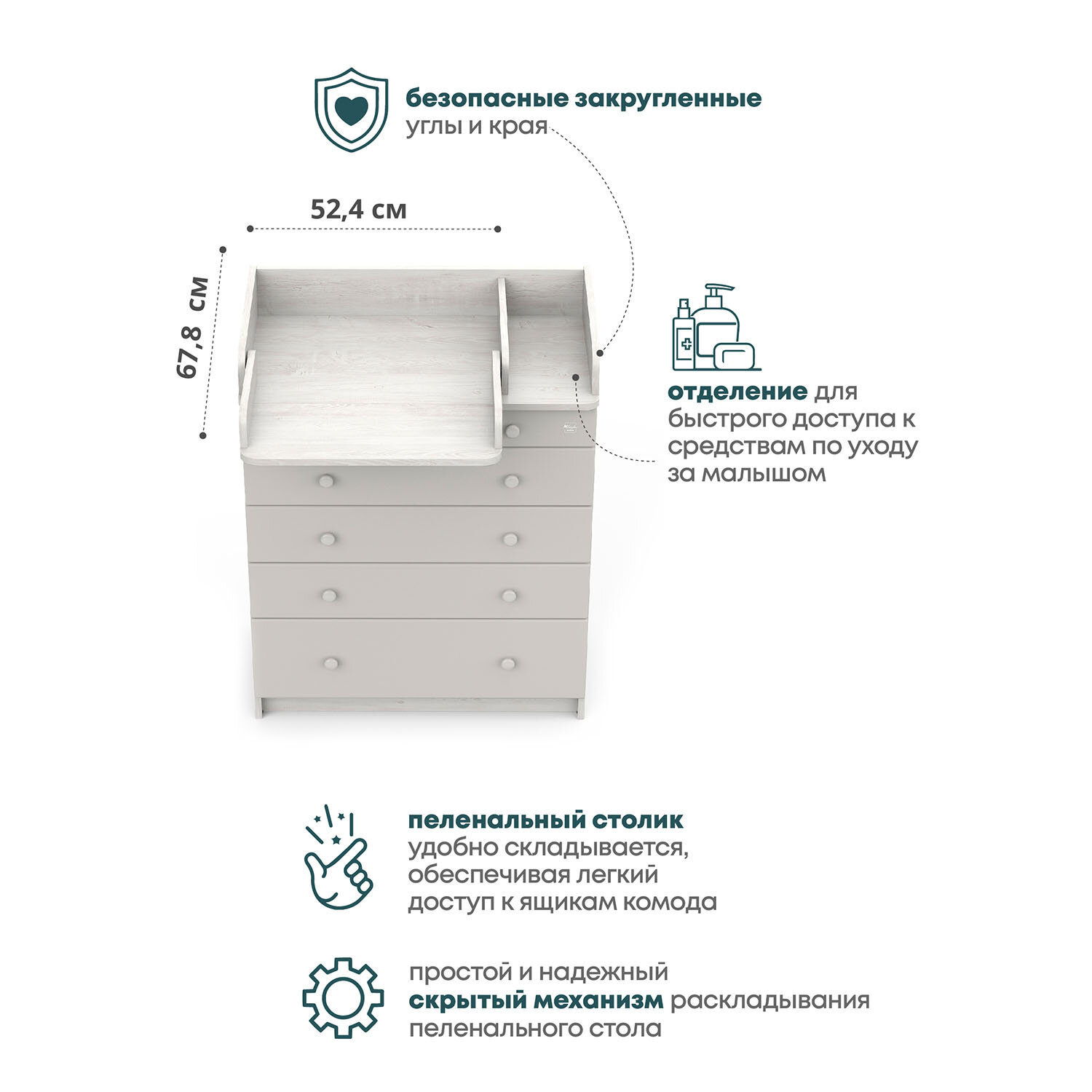 Комод детский с пеленальным столиком Сириус 604 ЛДСП, белый, 4 ящика