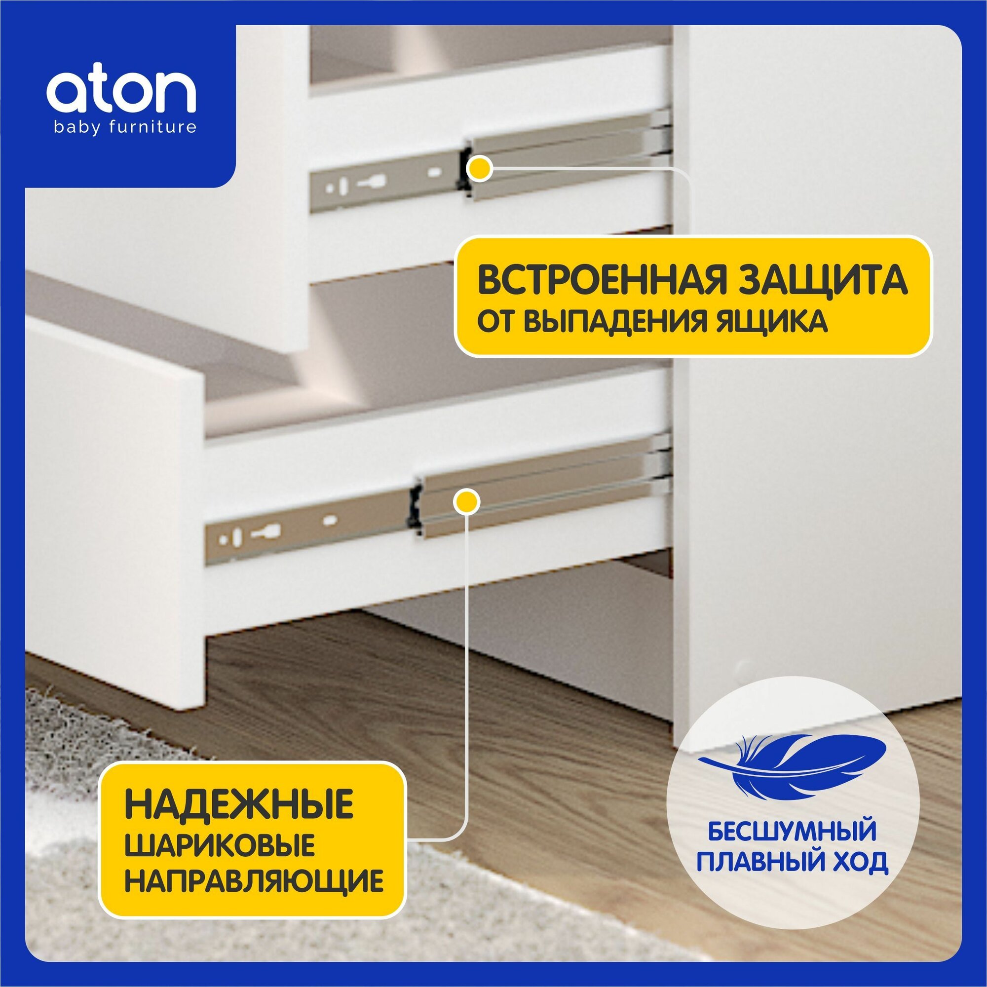 Комод пеленальный aton LEO, 5 ящиков с органайзером белый/белый