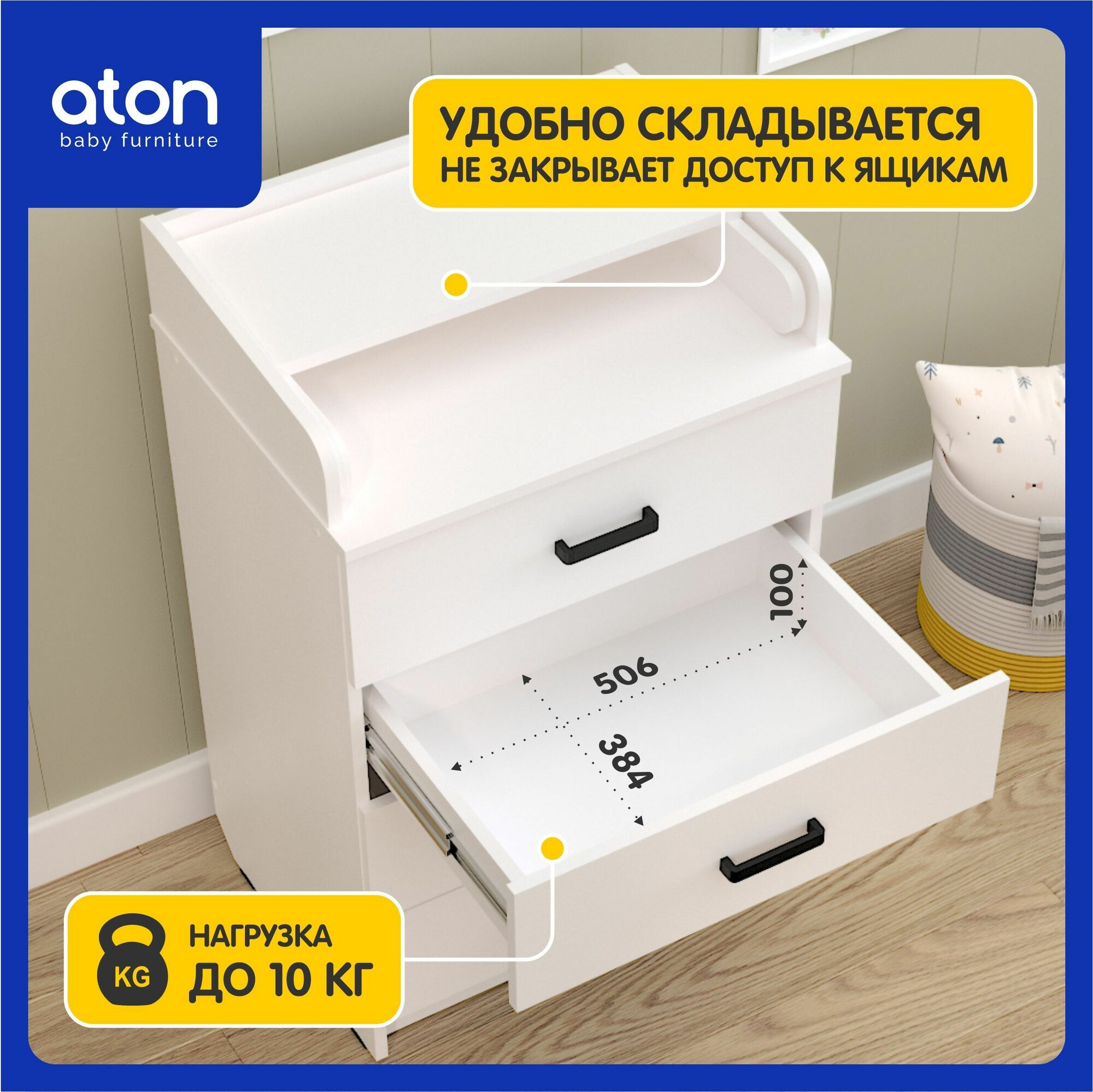 Купить Пеленальный комод для новорожденных с ящиками и откидным столиком Сириус 604 ЛДСП, Белый, Aton, 94х60х45 см