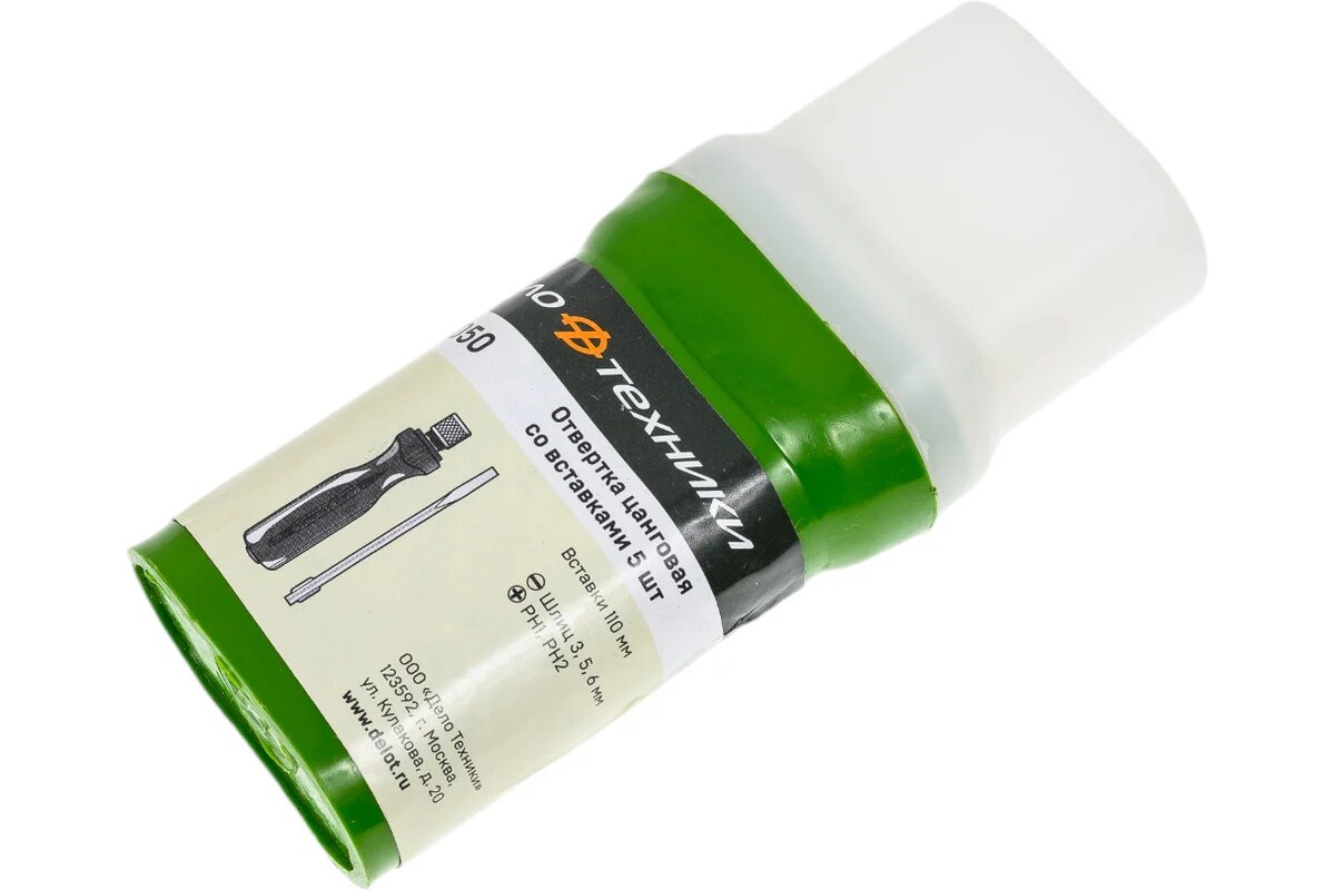 Дело техники 708050 отвертка цанговая с вставками 5 шт 110 мм шлиц 6 5 3 мм рн1 рн2 дт100 / 10