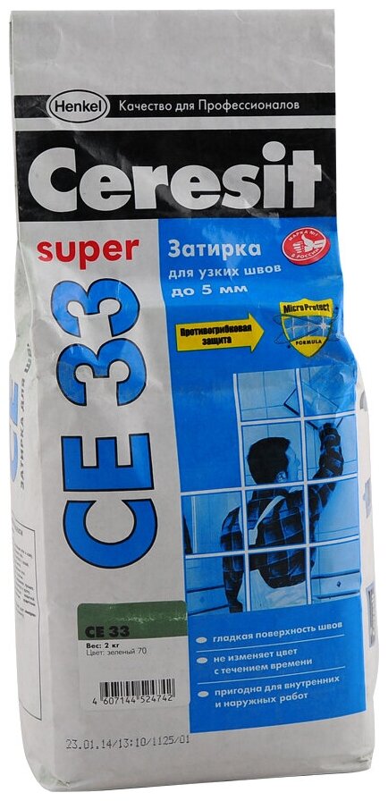 затирка для швов CERESIT СЕ 33 Super 1-6мм 2кг зеленая, арт.2092943