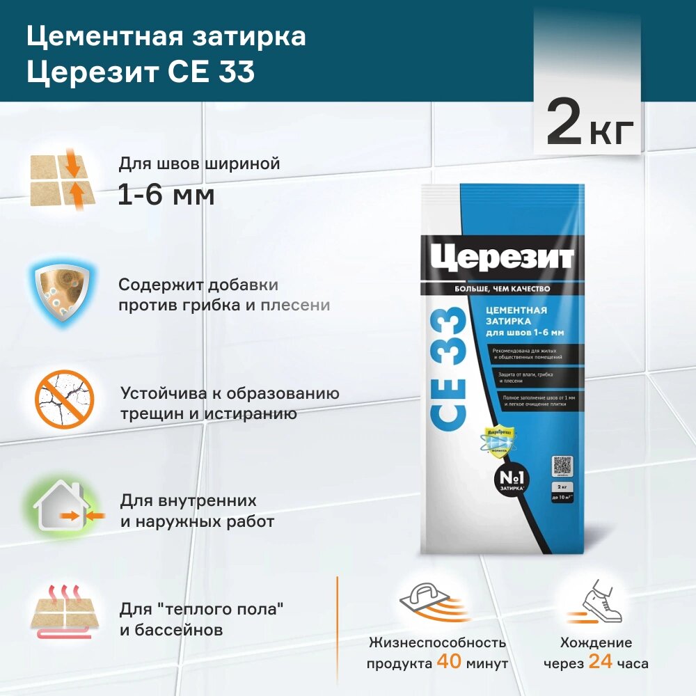 затирка для швов CERESIT СЕ 33 Super 1-6мм 2кг голубая, арт.2092750