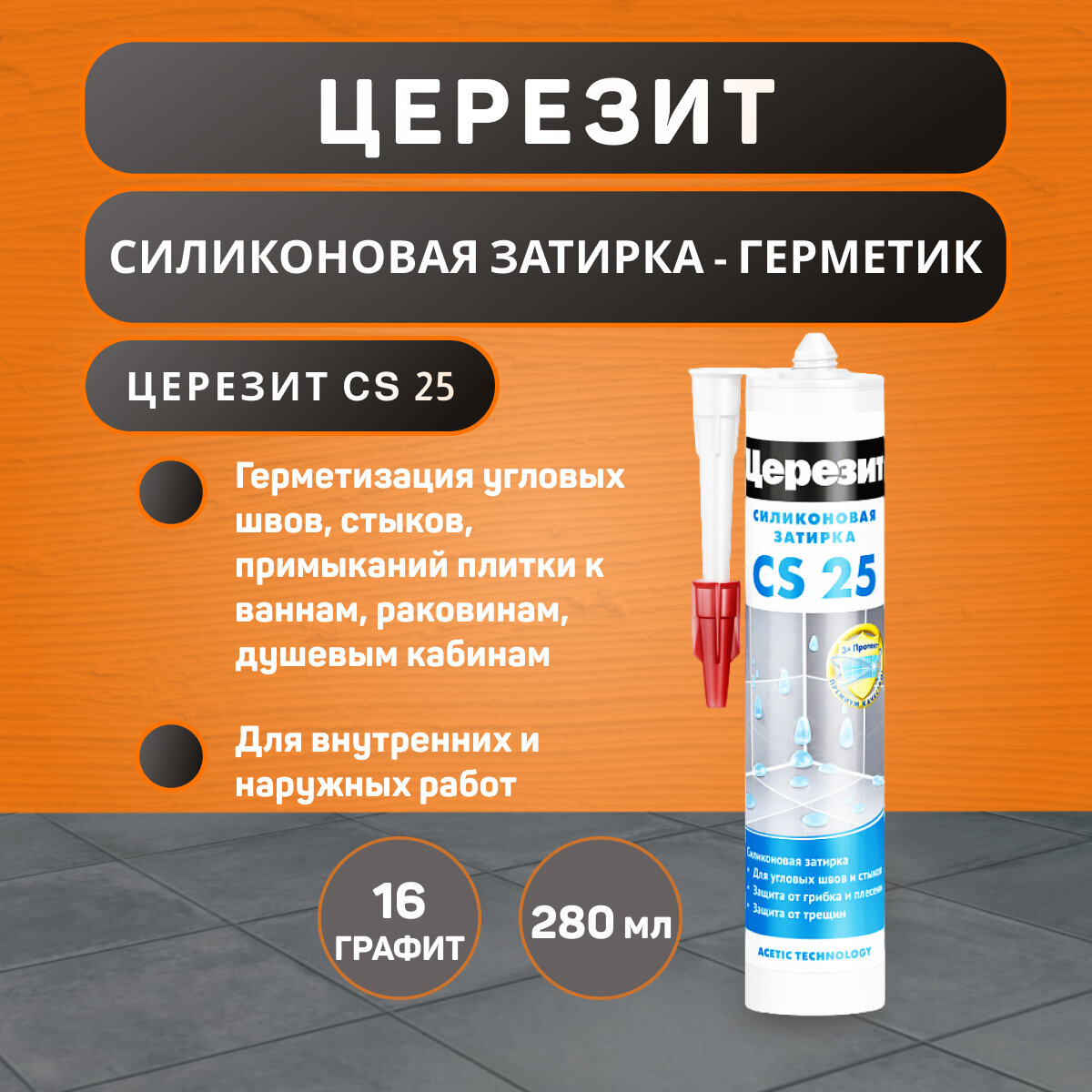 Затирка-герметик силиконовая Церезит CS 25 №16 "Графит", 280мл
