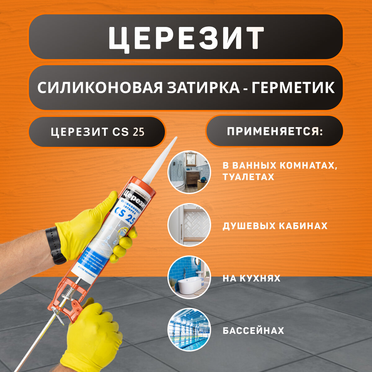 "Ceresit" CS 25. Силиконовая затирка-герметик, цвет - натура