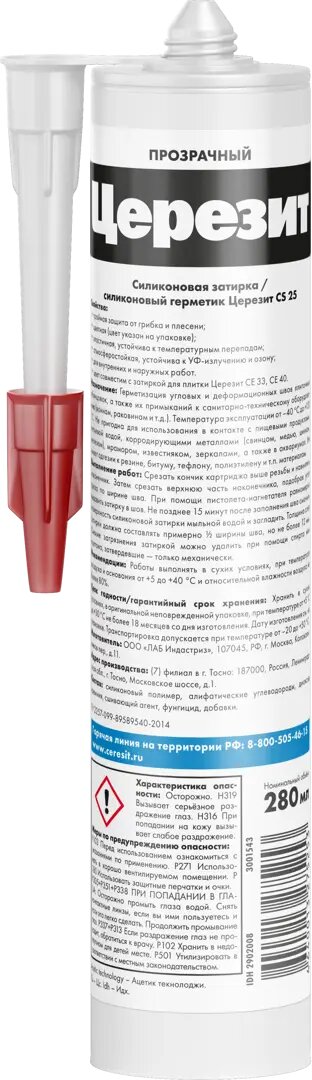 Герметик-затирка силиконовая противогрибковая Церезит CS 25 прозрачный 280 мл