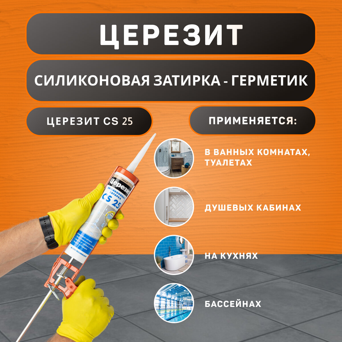"Ceresit" CS 25. Силиконовая затирка-герметик, цвет - натура