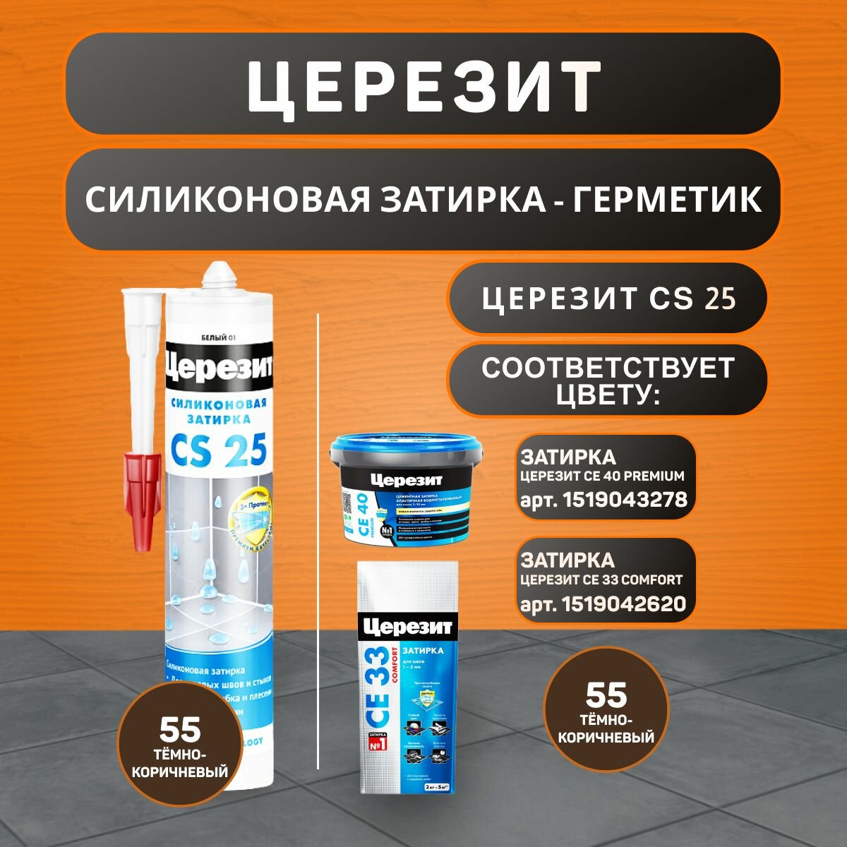 Силиконовая затирка-герметик Церезит CS 25 темно-коричневый №58, 280 мл