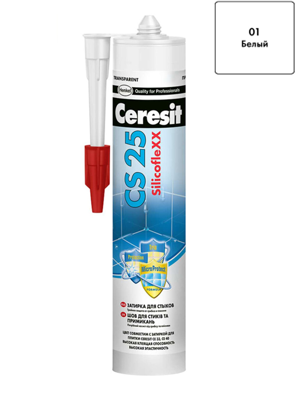 Силиконовая затирка-герметик Церезит CS 25 белый №01, 280 мл
