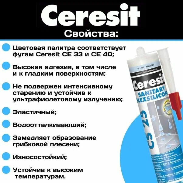 "Ceresit" CS 25. Силиконовая затирка-герметик, цвет - натура