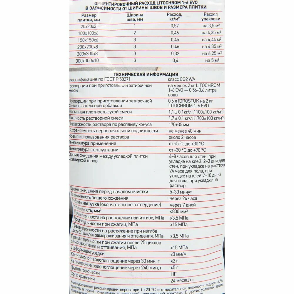 Затирка для плитки Litokol Litochrom 1-6 EVO LE.120 жемчужно-серая 2 кг