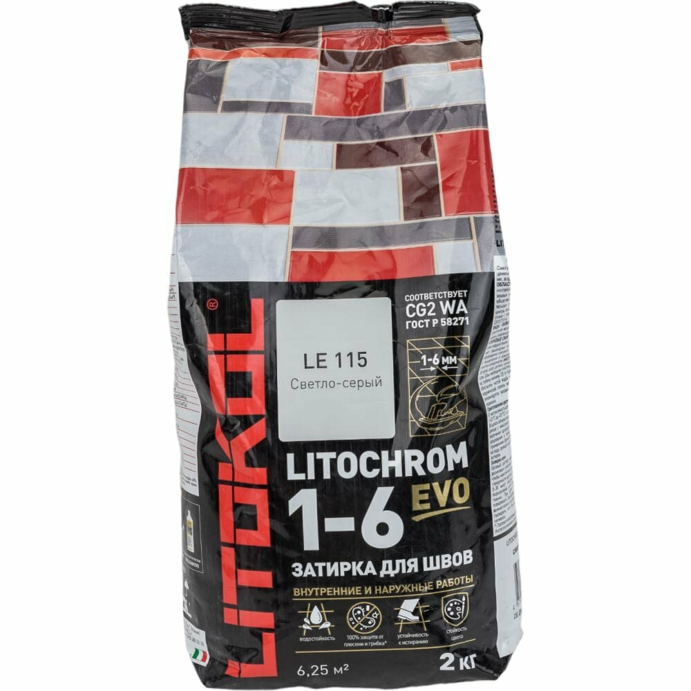 Купить Цементная затирка Литокол LITOKOL LITOCHROM 1-6 EVO LE.115 Cветло-серый, 2 кг