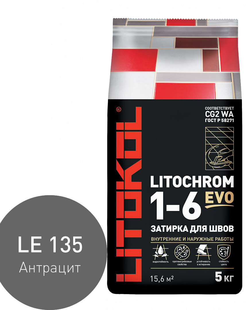 Купить Цементная затирка Литокол LITOKOL LITOCHROM 1-6 EVO LE.135 Антрацит, 5 кг