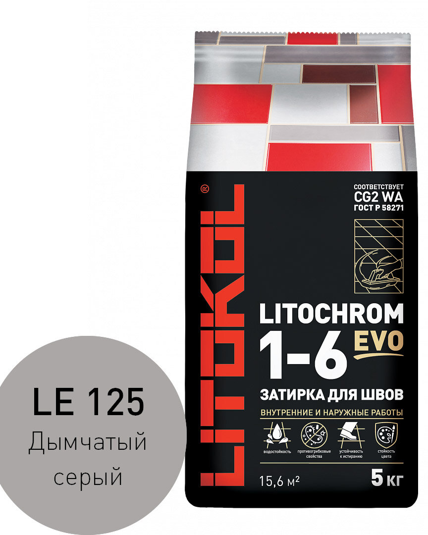 Затирка для плитки Litokol Litochrom 1-6 EVO LE.125 дымчатая серая 5 кг