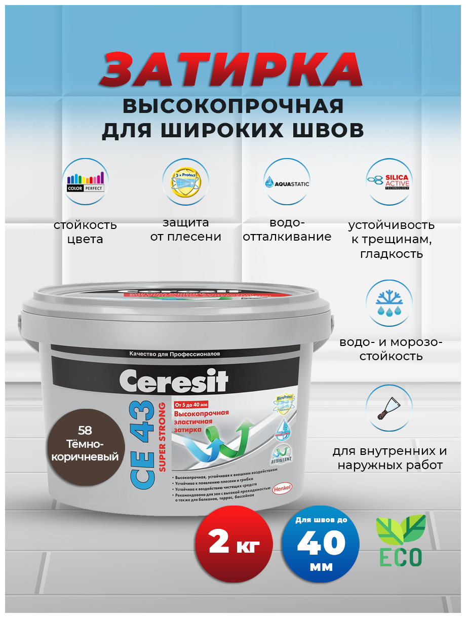Затирка Ceresit CE 43 Super Strong, 2 кг, темно-коричневый 58