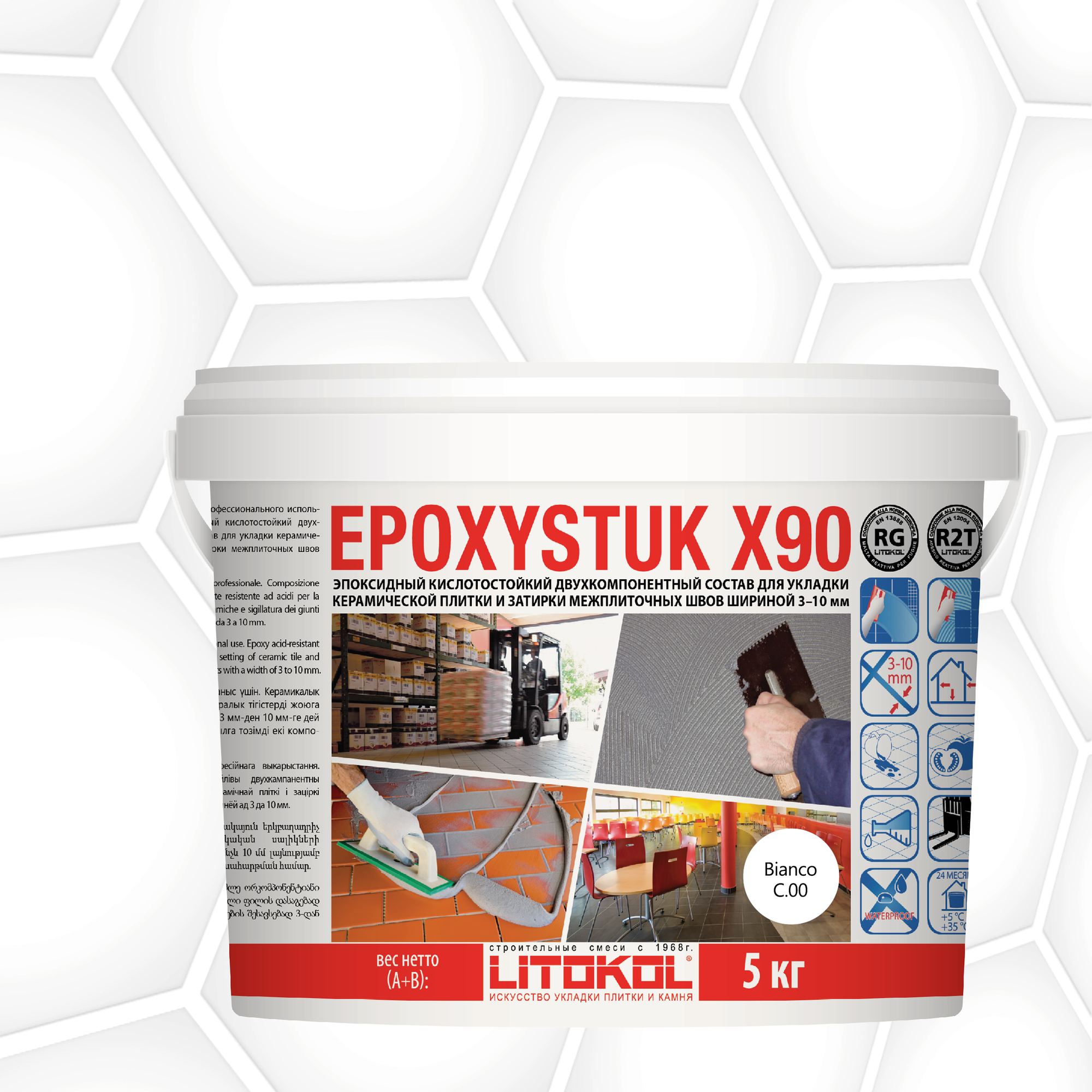 Эпоксидная затирка LITOKOL EPOXYSTUK X90 (литокол эпоксистук Х90) C.00 (белый), 5 кг