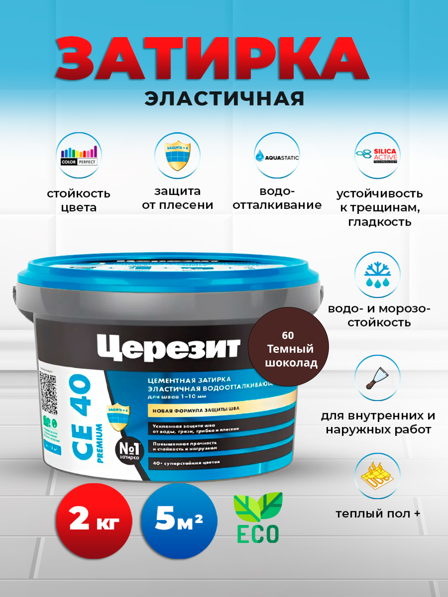 Затирка для плитки Церезит CE 40 Aquastatic №60 темный шоколад 2 кг