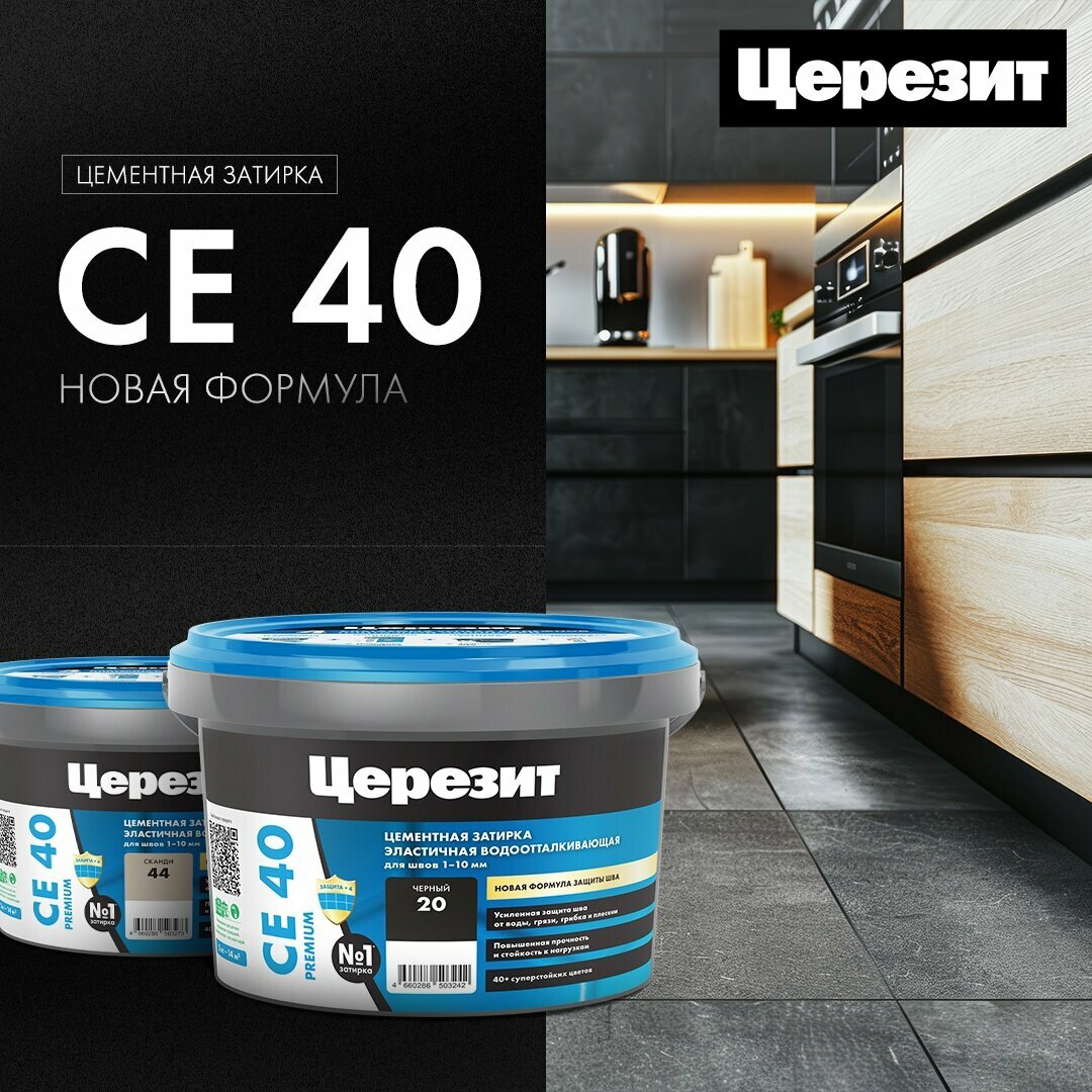 Церезит / CERESIT CE 40 Затирка эластичная аквастатик, серая 07, 1 кг