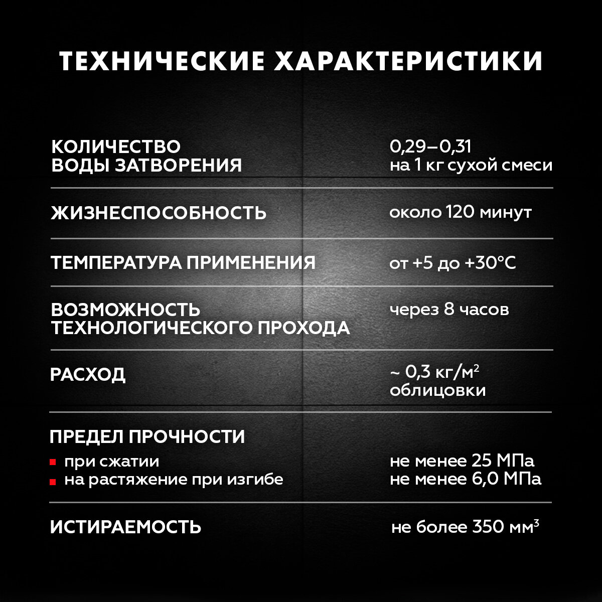 | Расход воды на 1 кг смеси | 0 л |