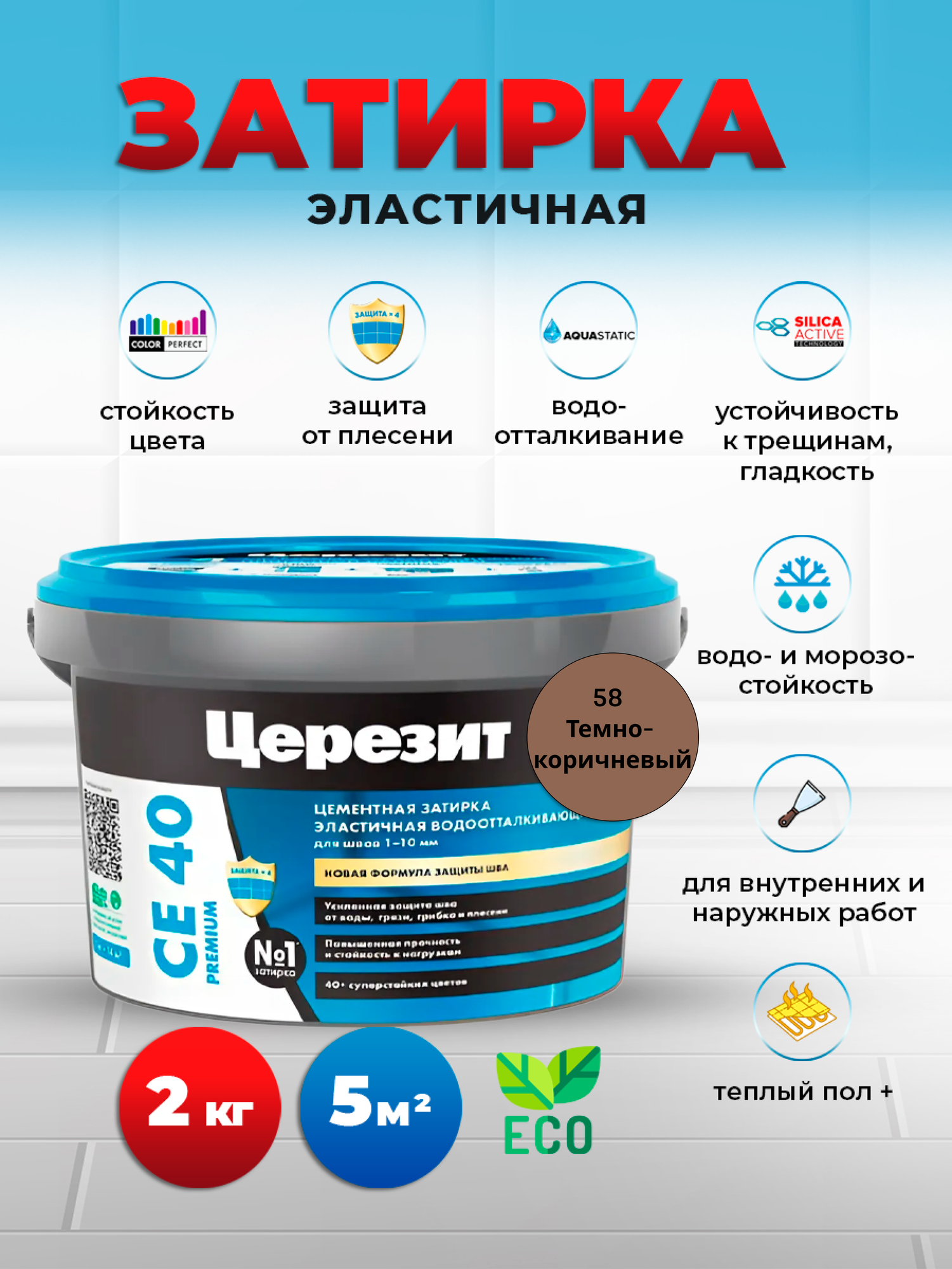 Затирка для плитки Церезит CE 40 Aquastatic №58 темно-коричневая 2 кг